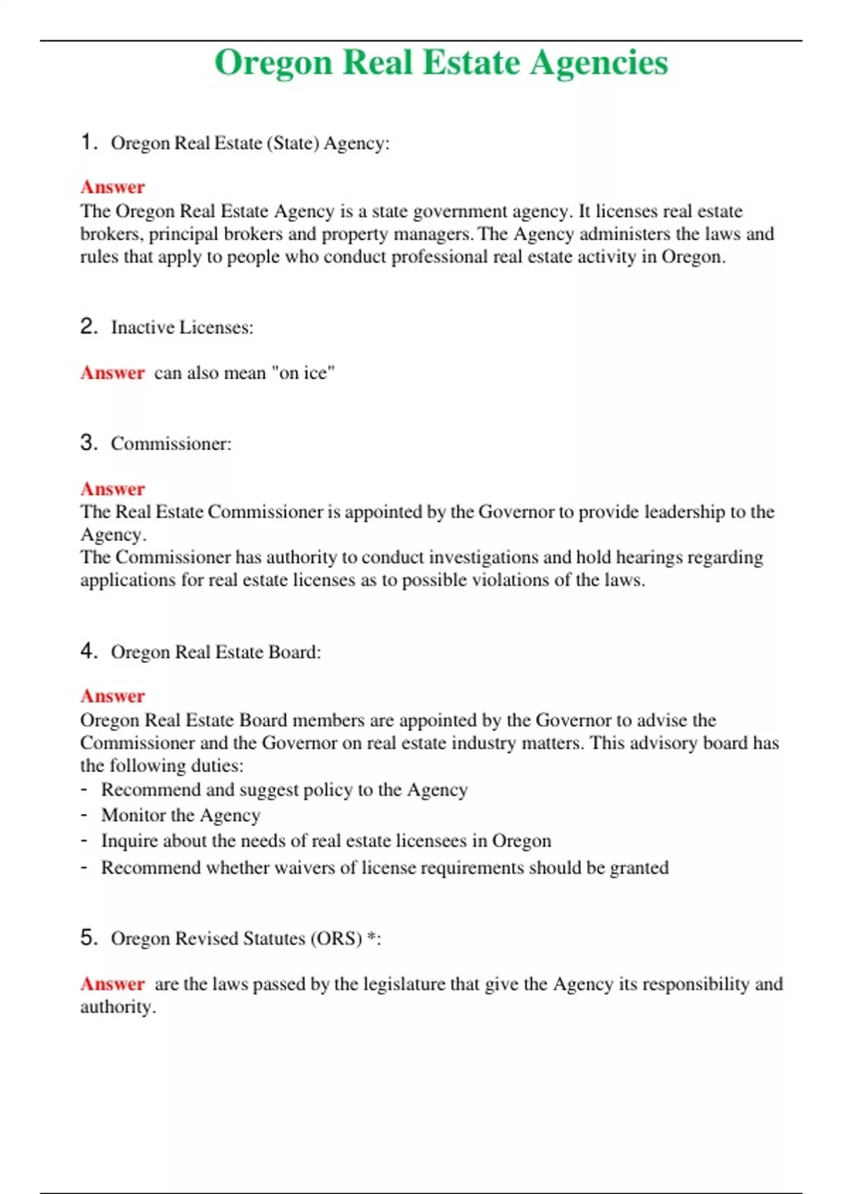 Oregon Real Estate Agencies (Latest 2024) Questions With Complete Grade A+ Answers