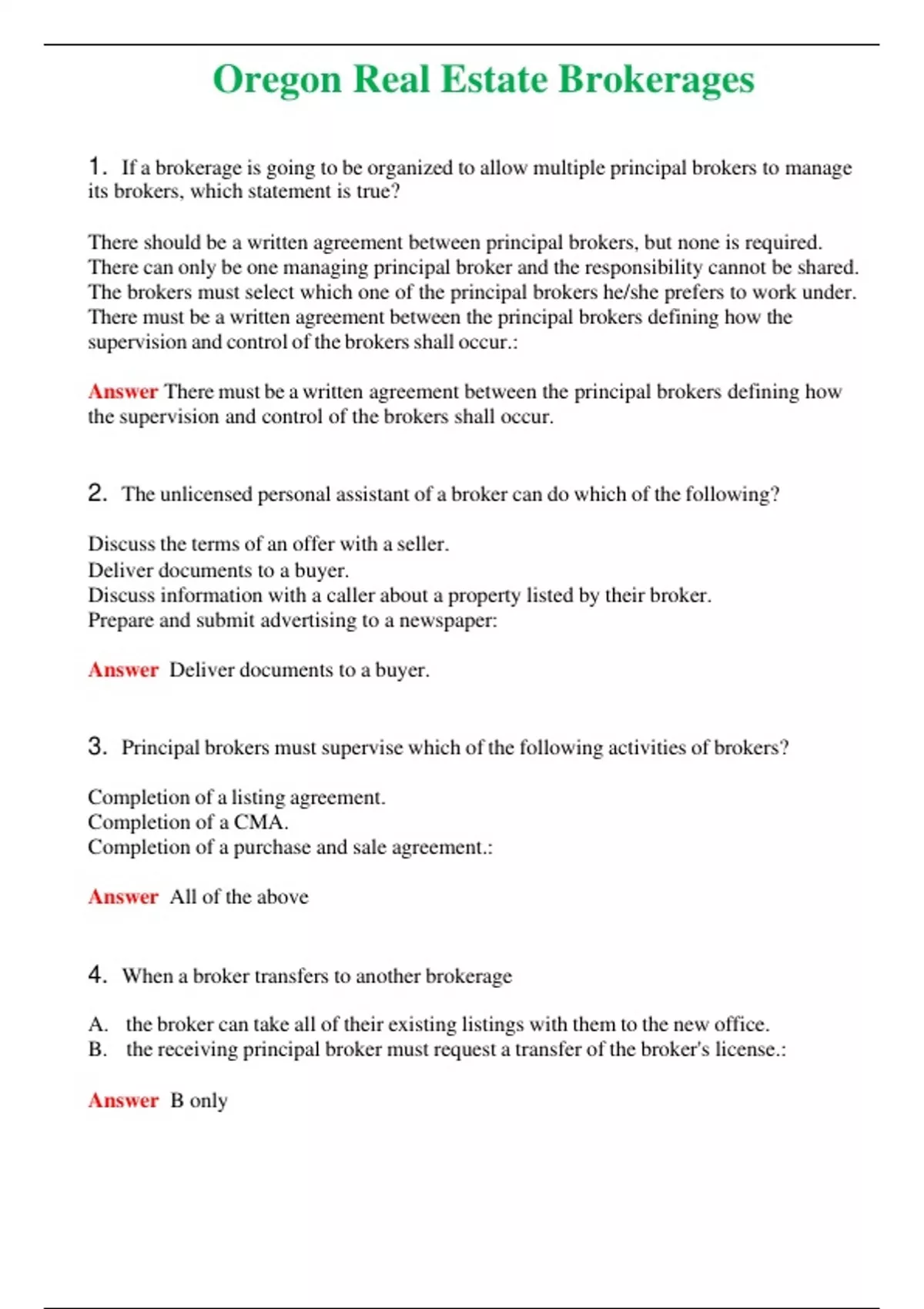 Oregon Real Estate Brokerages (Latest 2024) Questions With Complete Grade A+ Answers