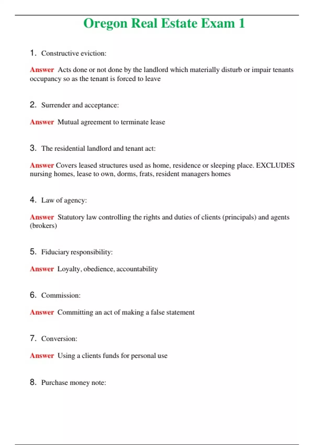 Oregon Real Estate Exam 1 (Latest 2024) Questions With Complete Grade A+ Answers