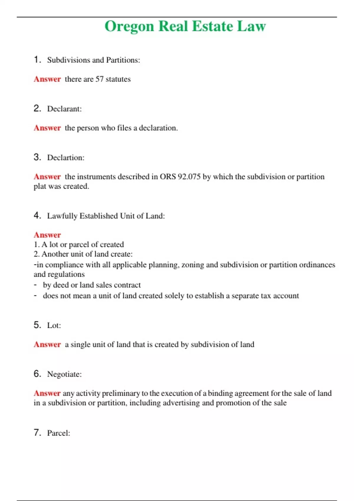 Oregon Real Estate Law (Latest 2024) Questions With Complete Grade A+ Answers