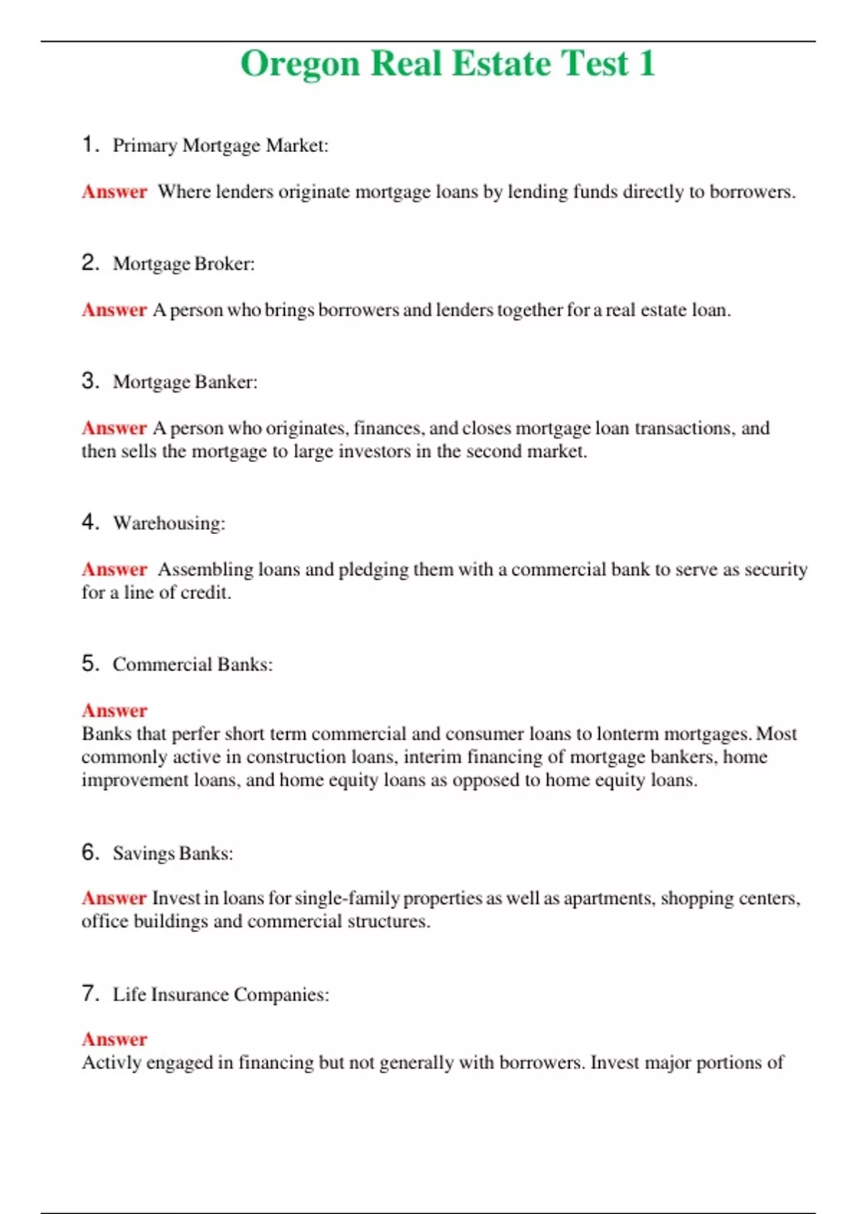 Oregon Real Estate Test 1 (Latest 2024) Questions With Complete Grade A+ Answers