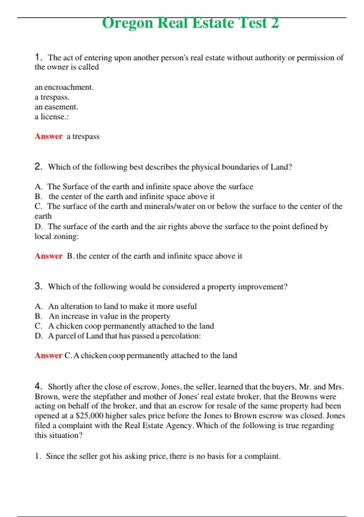 Oregon Real Estate Test 2 (Latest 2024) Questions With Complete Grade A+ Answers