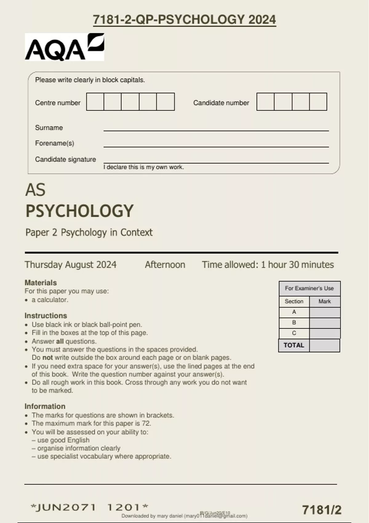 7181-2-QP-PSYCHOLOGY 2024 AS PSYCHOLOGY
