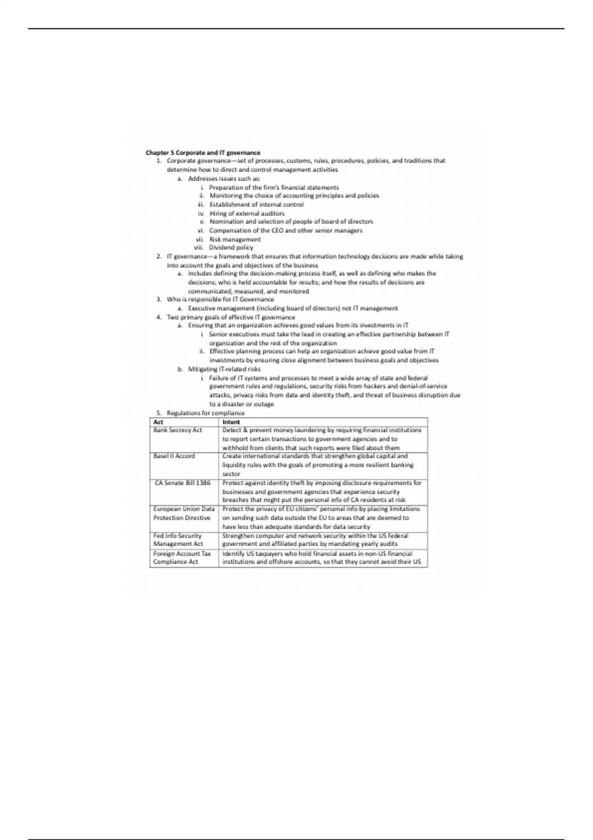 This is a comprehensive and detailed note on Chapter 5; corporate and IT governance. Quality stuff!!