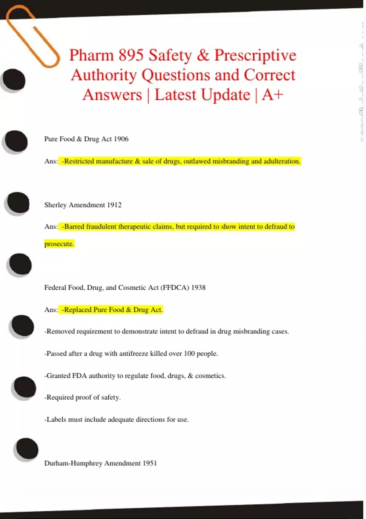 Pharm 895 Safety & Prescriptive Authority Questions and Correct Answers | Latest Update | A+