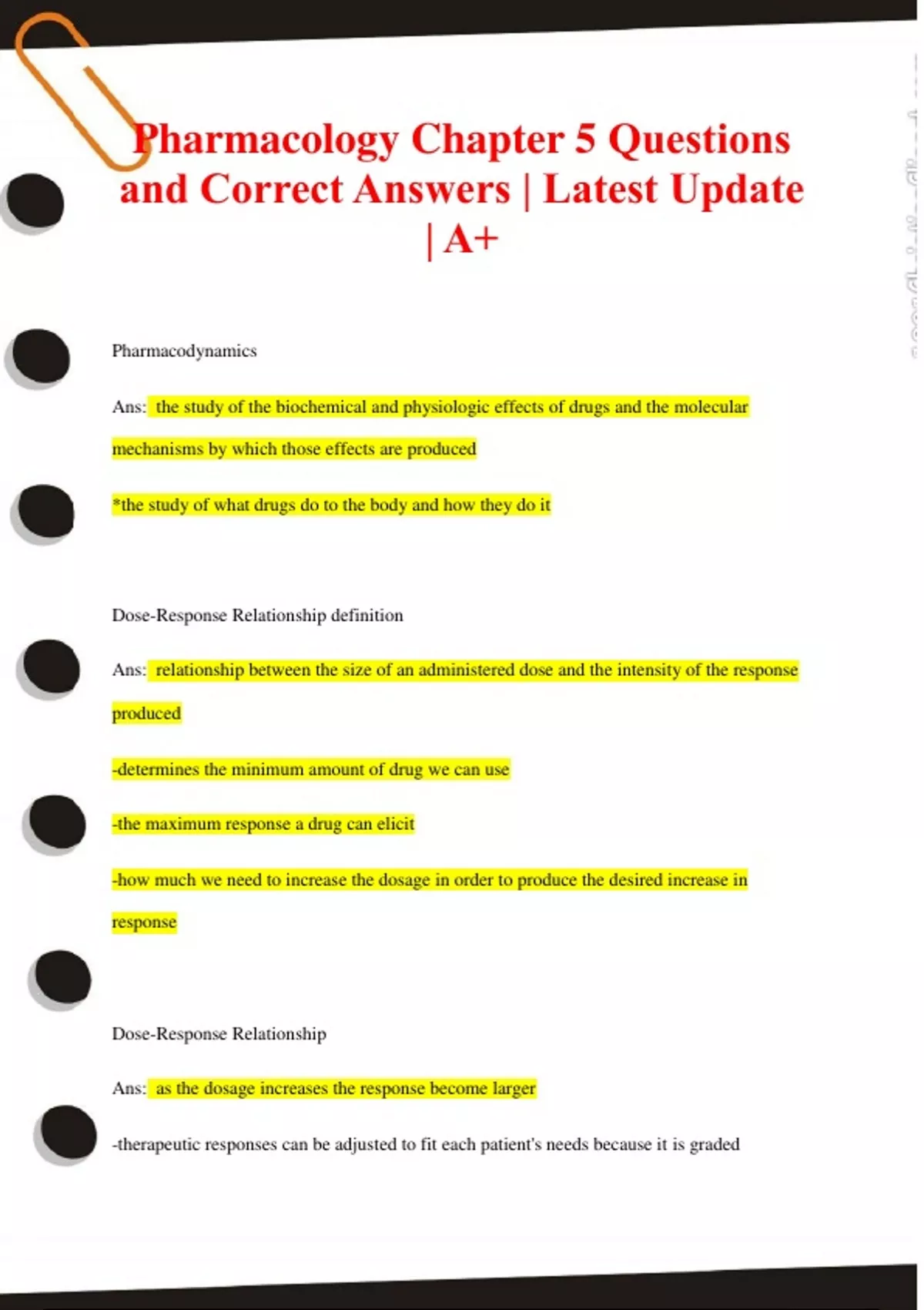 Pharmacology Chapter 5 Questions and Correct Answers | Latest Update | A+