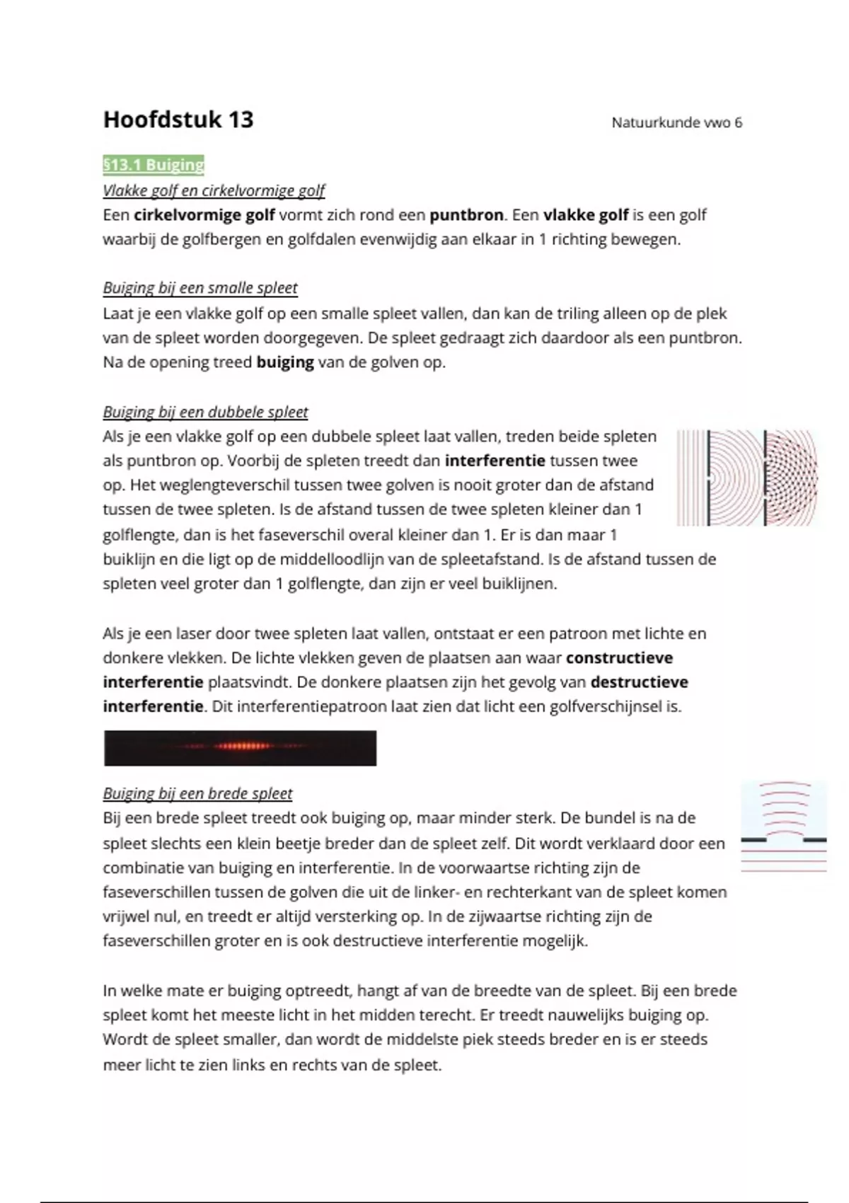 spleet komt het meeste licht in het midden terecht. Er treedt nauwelijks buiging op.
