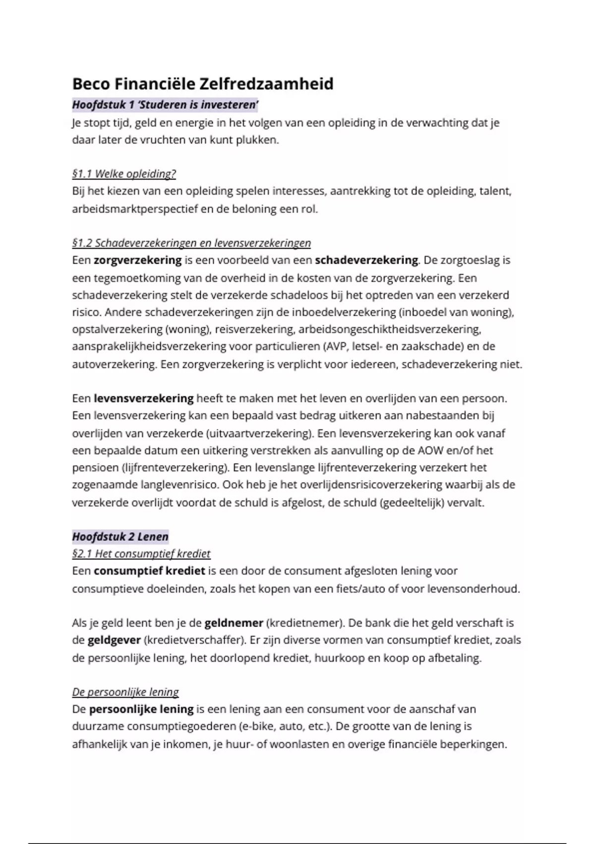 In het document vind je een complete samenvatting van de lesbrief Financiële Zelfredzaamheid vwo 6 (Bedrijfseconomie). Per hoofdstuk staat alles wat je moet weten overzichtelijk voor je opgeschreven.