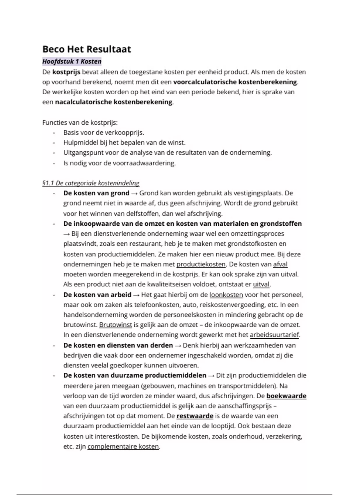 - De kosten van vermogen → Dit zijn kosten die gemaakt zijn om het vermogen