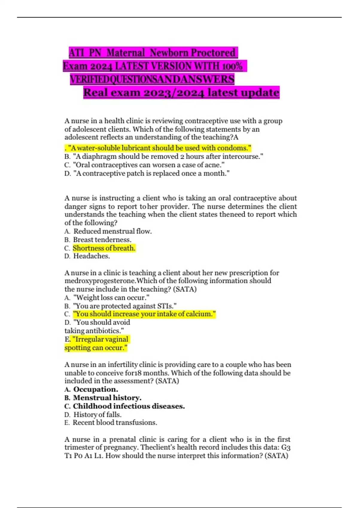 ATI PN Maternal Newborn Proctored Exam 2024 LATEST VERSION WITH 100% VERIFIEDQUESTIONSANDANSWERS Real exam 2023/2024 latest update