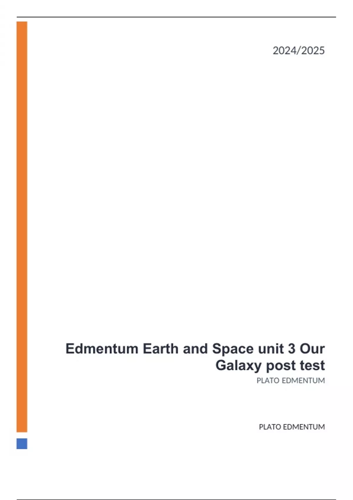 Edmentum Earth and Space unit 3 Our Galaxy post test well answered to pass