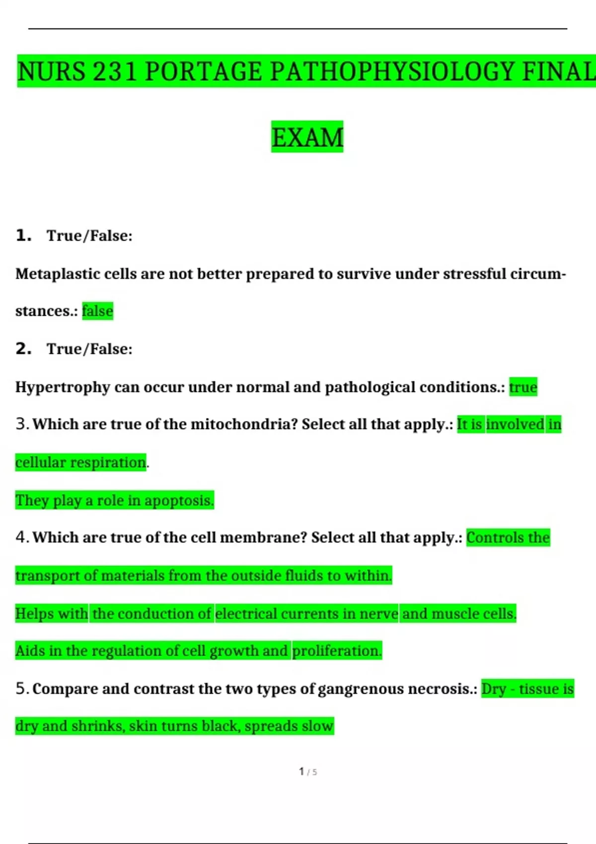 NURS 231 Portage Pathophysiology FINAL Exam Questions and Answers Latest (2024 / 2025) (Verified Answers)