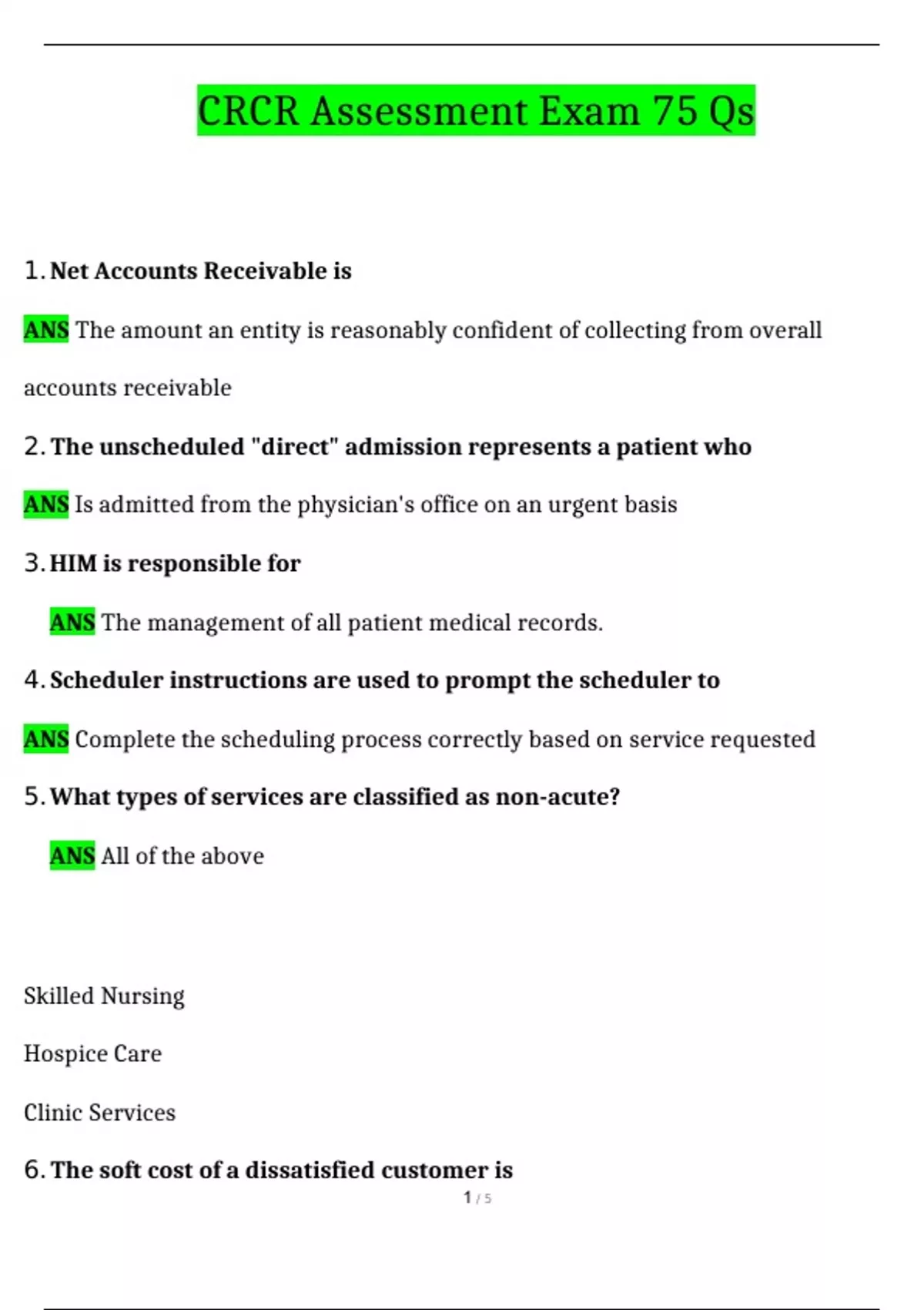 5. What types of services are classified as non-acute?