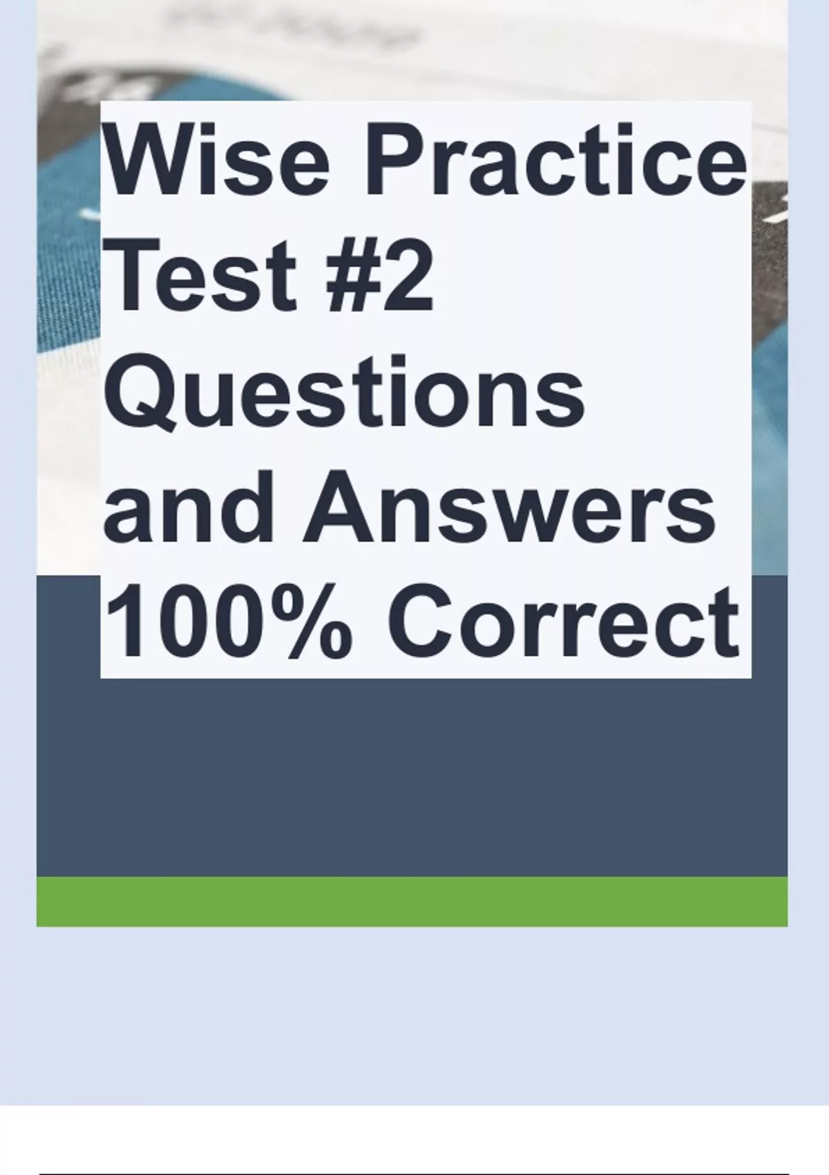 Wise Practice Test #2 Questions and Answers 100% Correct