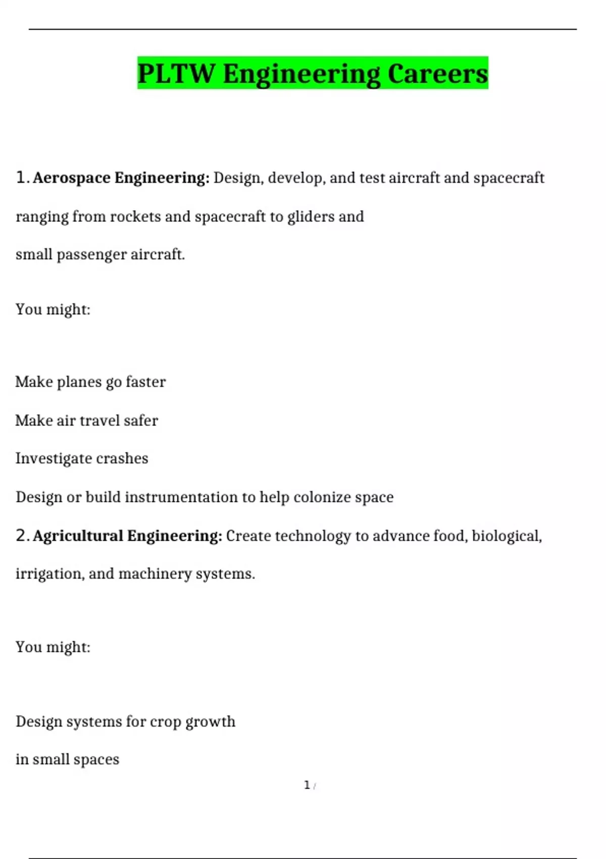 PLTW Engineering Careers Exam 2024 Questions and Answers Latest (2024 / 2025) (Verified Answers)