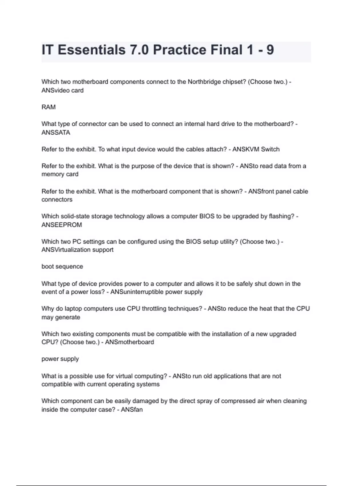 IT Essentials 7.0 Practice Final 1 - 9 questions and answers graded A+ by experts 2024/2025