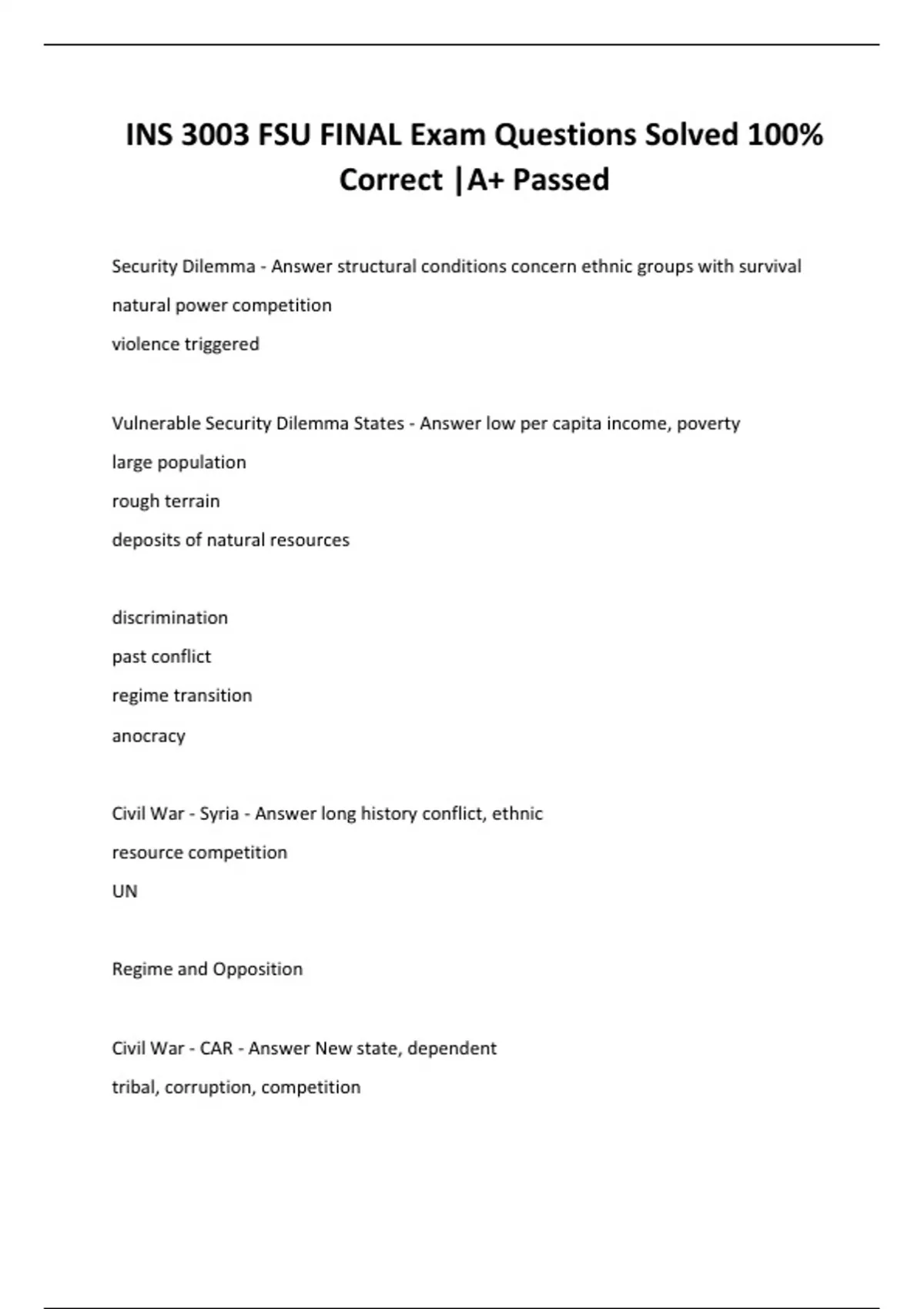 INS 3003 FSU FINAL Exam Questions Solved 100% Correct |A+ Passed