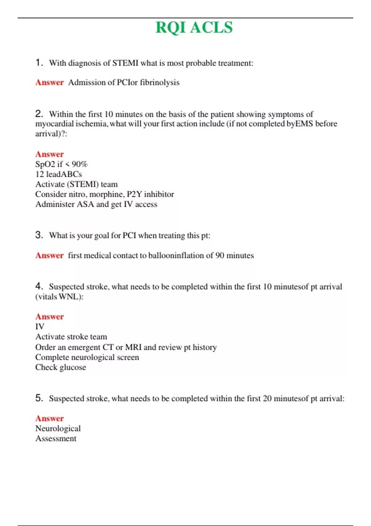 RQI ACLS (Latest 2024) Questions With Complete Grade A+ Answers