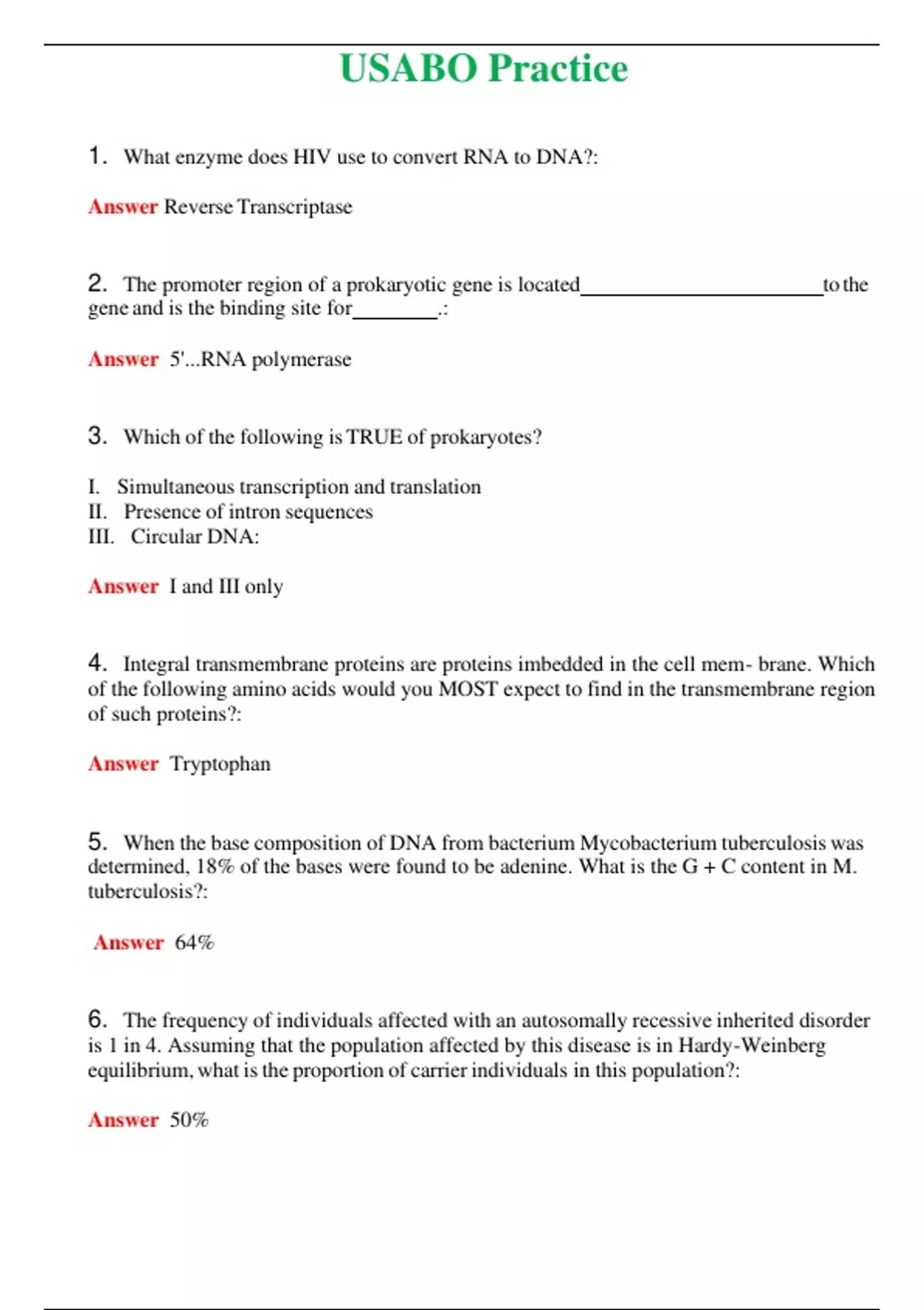 USABO Practice (Latest 2024) Questions With Complete Grade A+ Answers