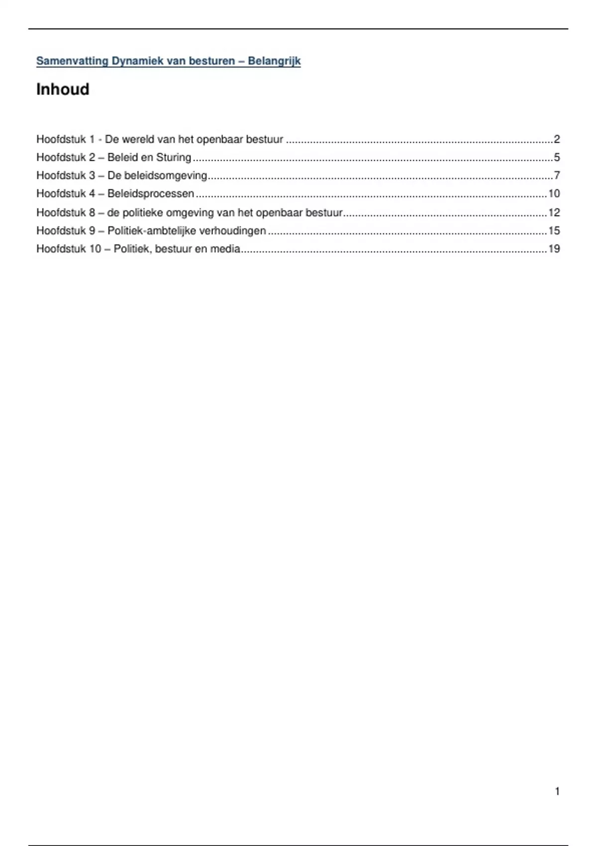 Samenvatting Dynamiek van besturen – Belangrijk