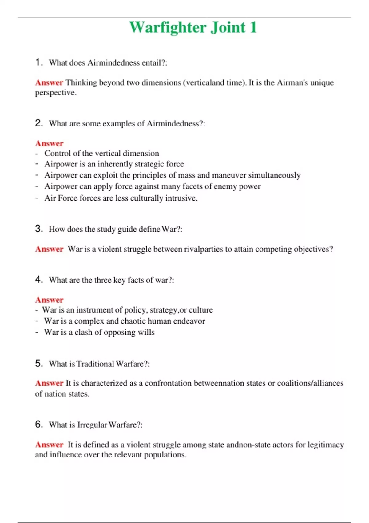 2024 Warfighter Joint 1 | Actual Questions and Verified Answers ( Included ) 100% Correct