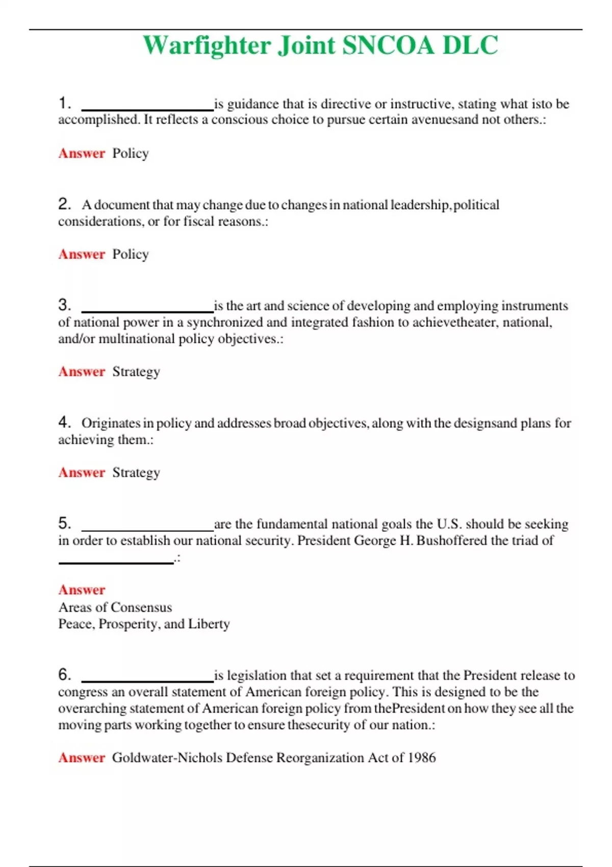 2024 Warfighter Joint SNCOA DLC | Actual Questions and Verified Answers ( Included ) 100% Correct