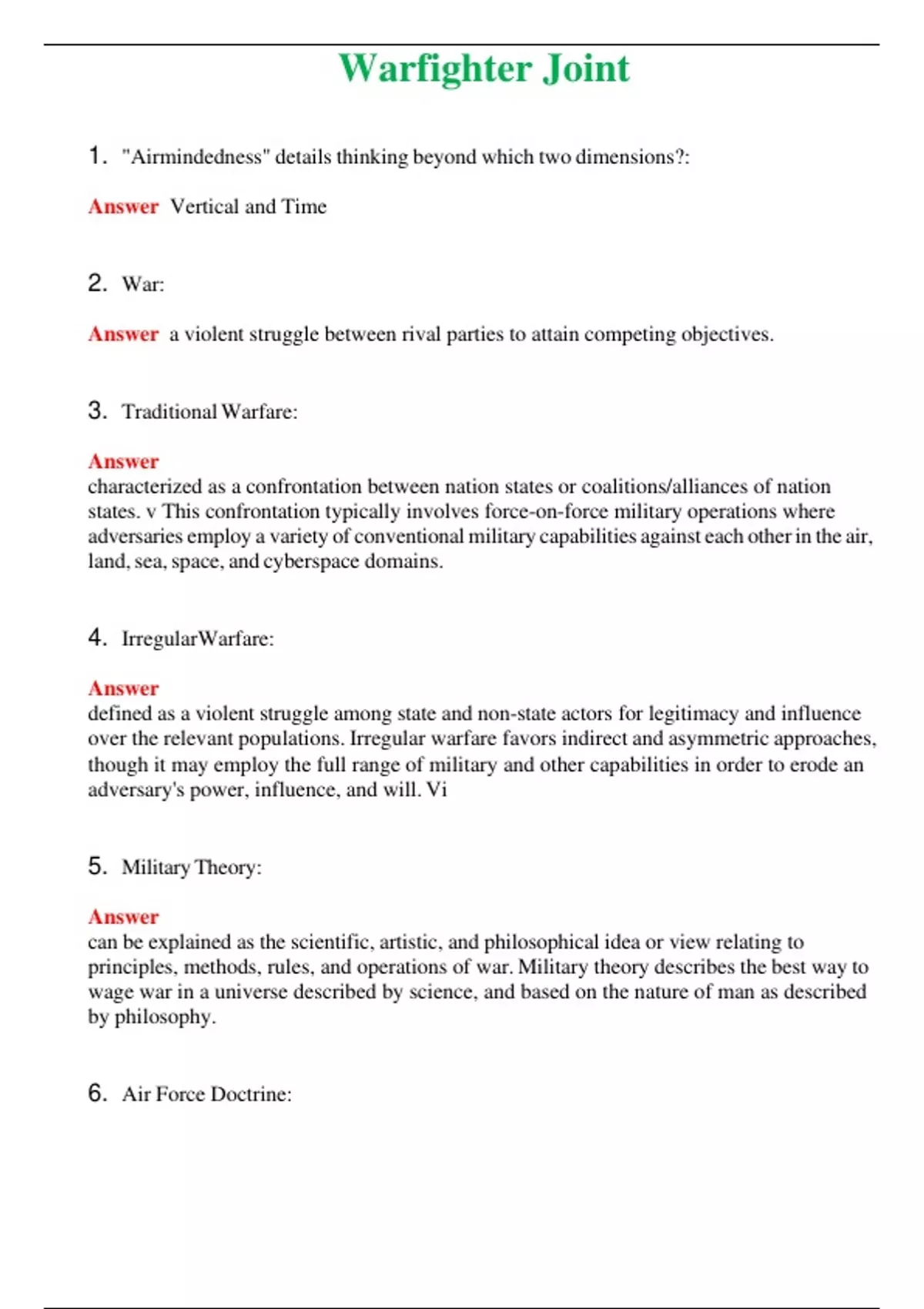2024 Warfighter Joint | Actual Questions and Verified Answers ( Included ) 100% Correct