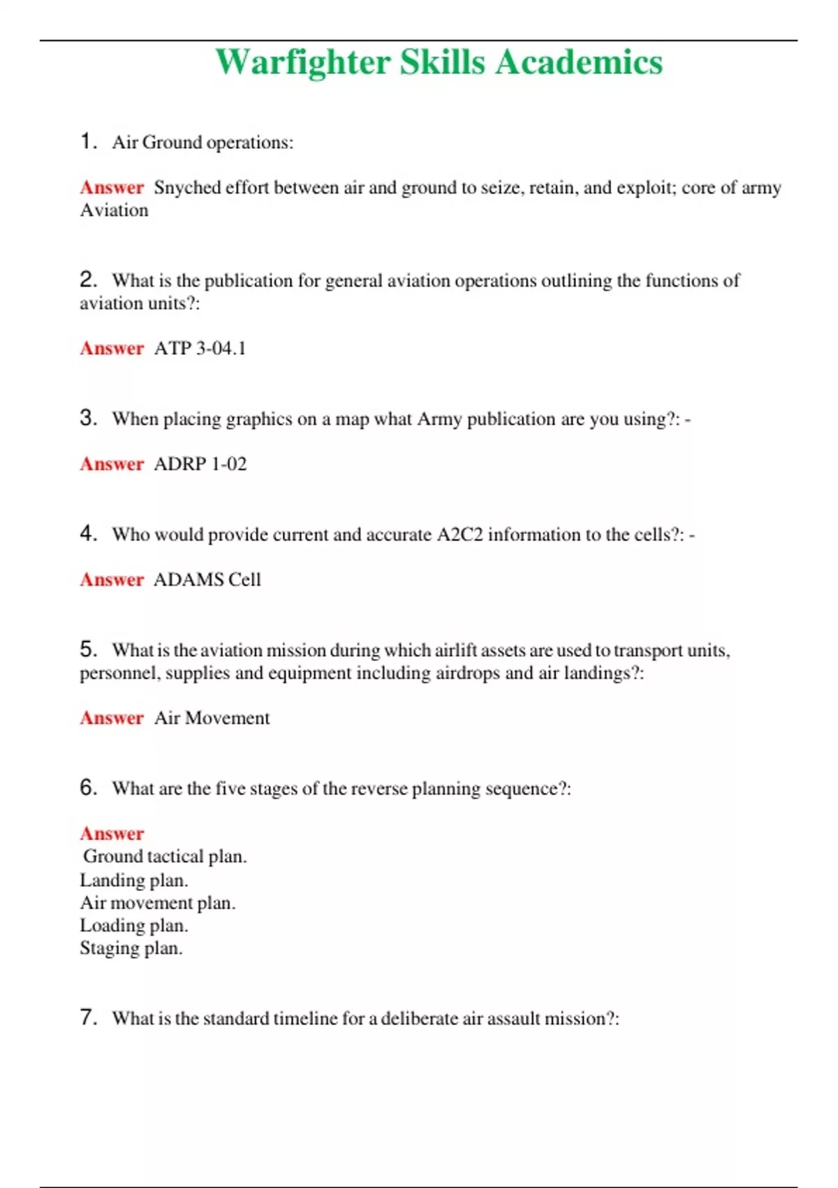 2024 Warfighter Skills Academics | Actual Questions and Verified Answers ( Included ) 100% Correct