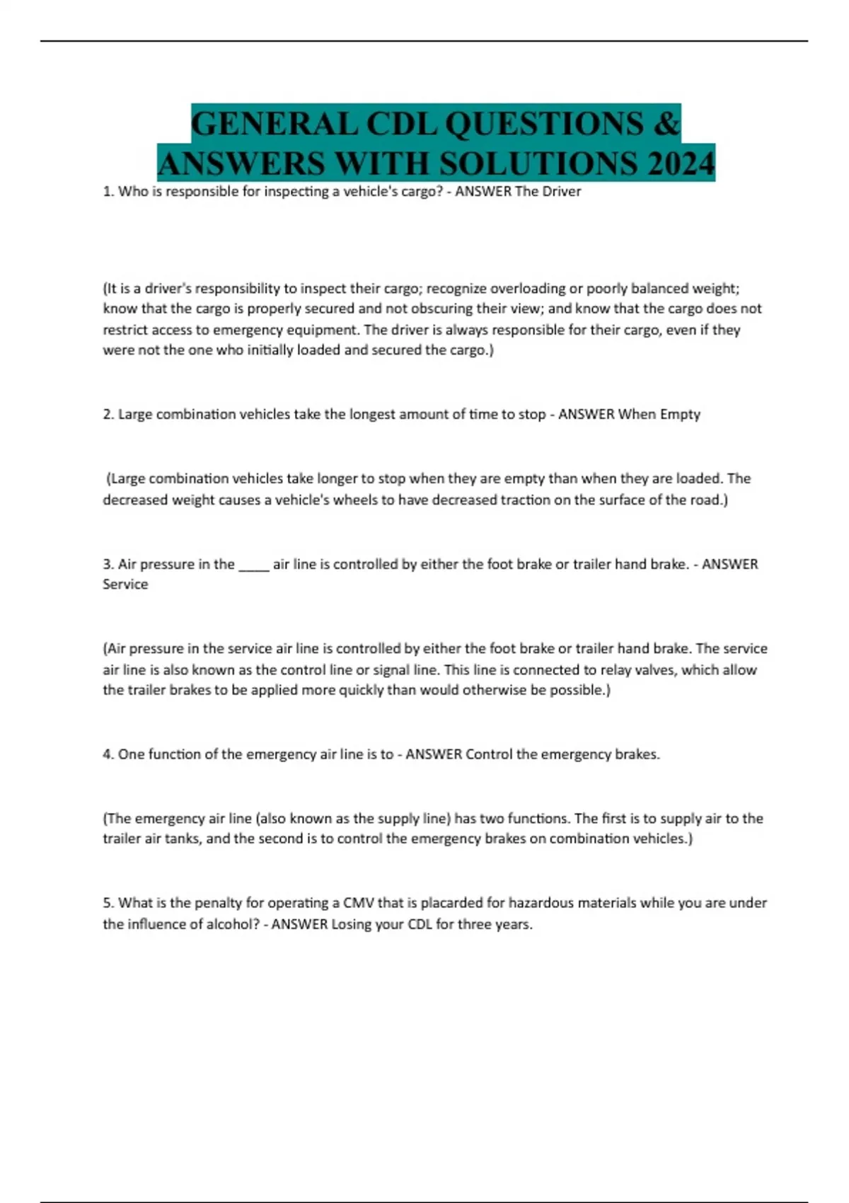 GENERAL CDL QUESTIONS & ANSWERS WITH SOLUTIONS 2024