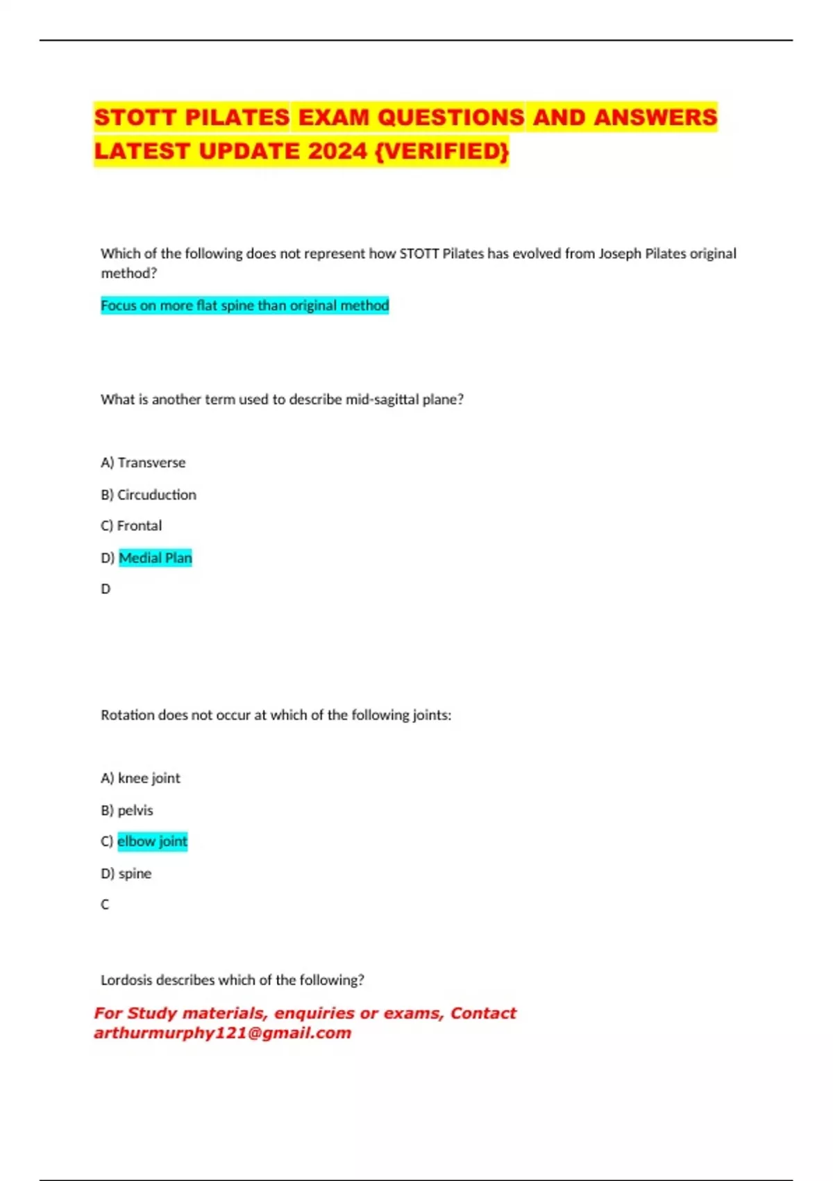 stott pilates exam questions and answers latest