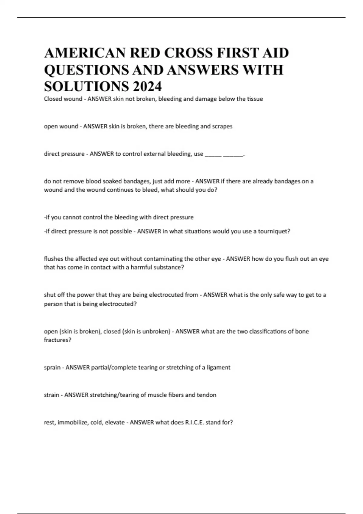 AMERICAN RED CROSS FIRST AID QUESTIONS AND ANSWERS WITH SOLUTIONS 2024