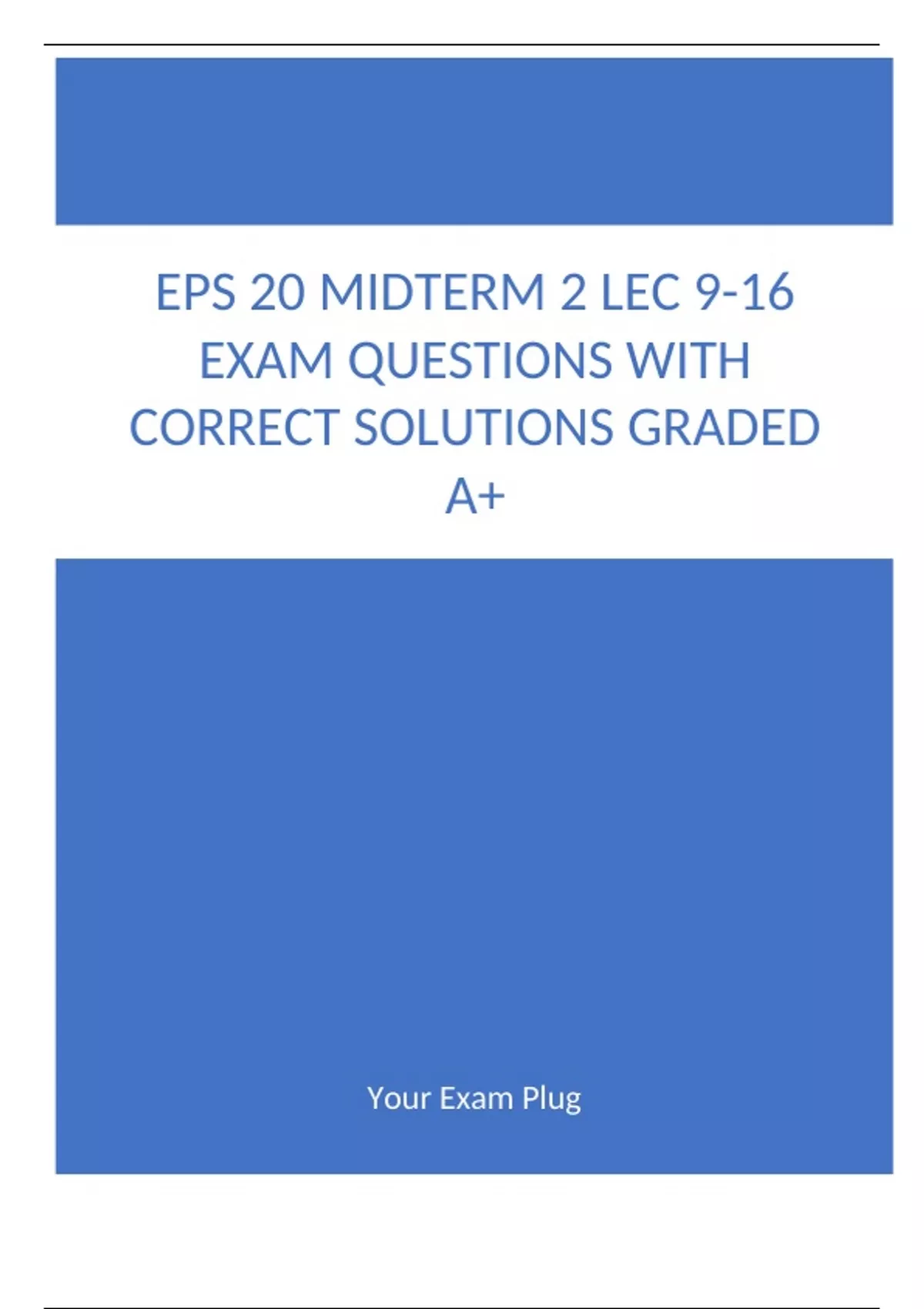 EPS 20 MIDTERM 2 LEC 9-16 EXAM QUESTIONS WITH CORRECT SOLUTIONS GRADED A+