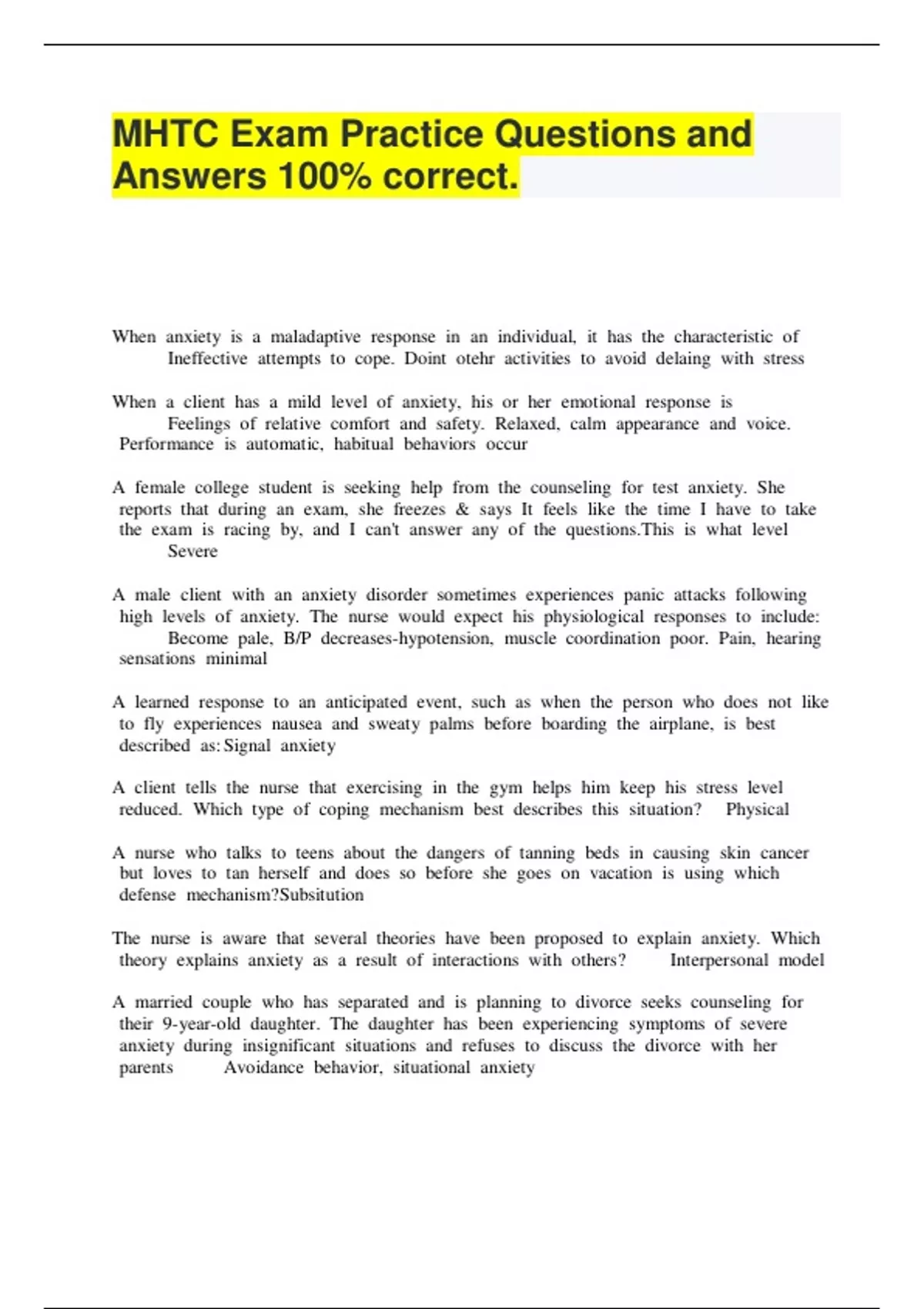 mhtc exam practice questions and answers 100 corr