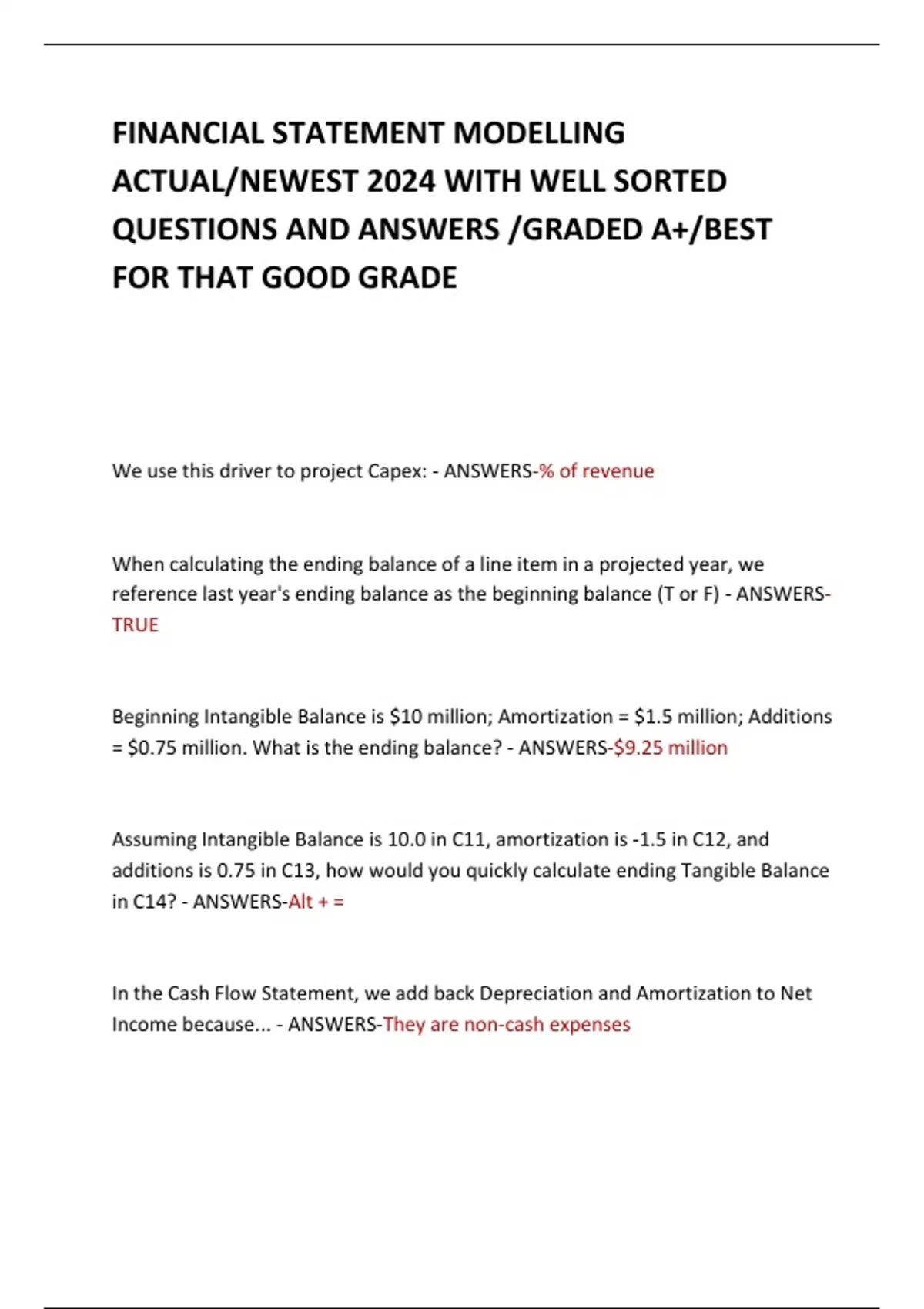 FINANCIAL STATEMENT MODELLING ACTUAL/NEWEST 2024 WITH WELL SORTED QUESTIONS AND ANSWERS /GRADED A+/BEST FOR THAT GOOD GRADE