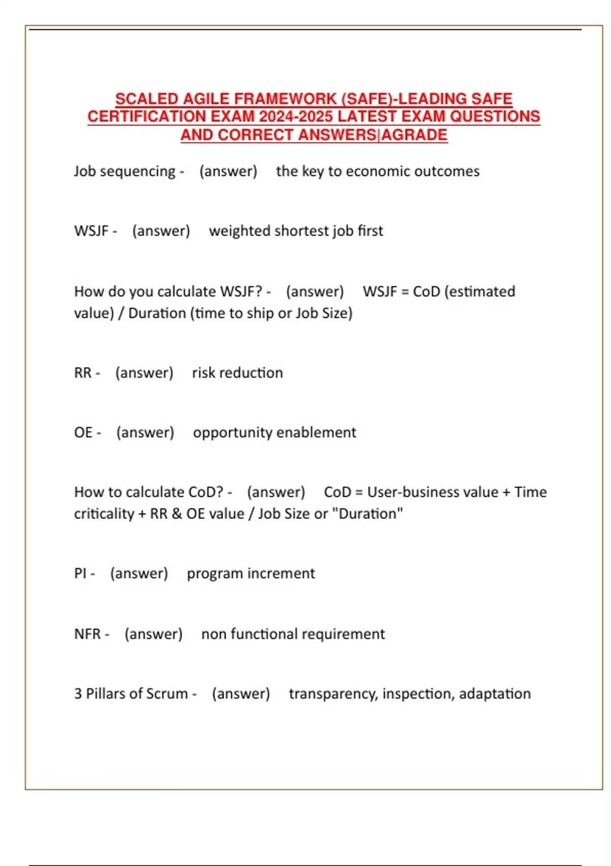 How do you calculate WSJF? - (answer) WSJF = CoD (estimated