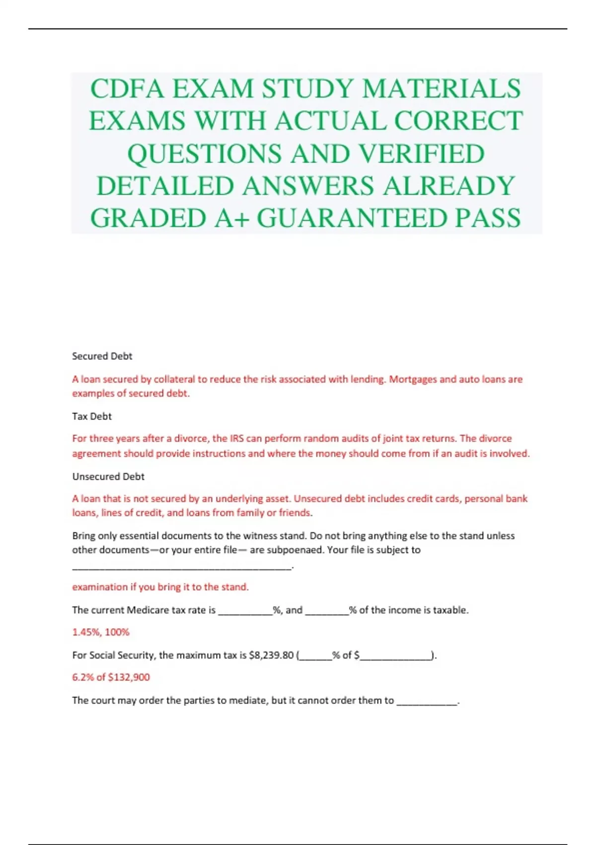 CDFA EXAM STUDY MATERIALS EXAMS WITH ACTUAL CORRECT QUESTIONS AND VERIFIED DETAILED ANSWERS ALREADY GRADED A+ GUARANTEED PASS