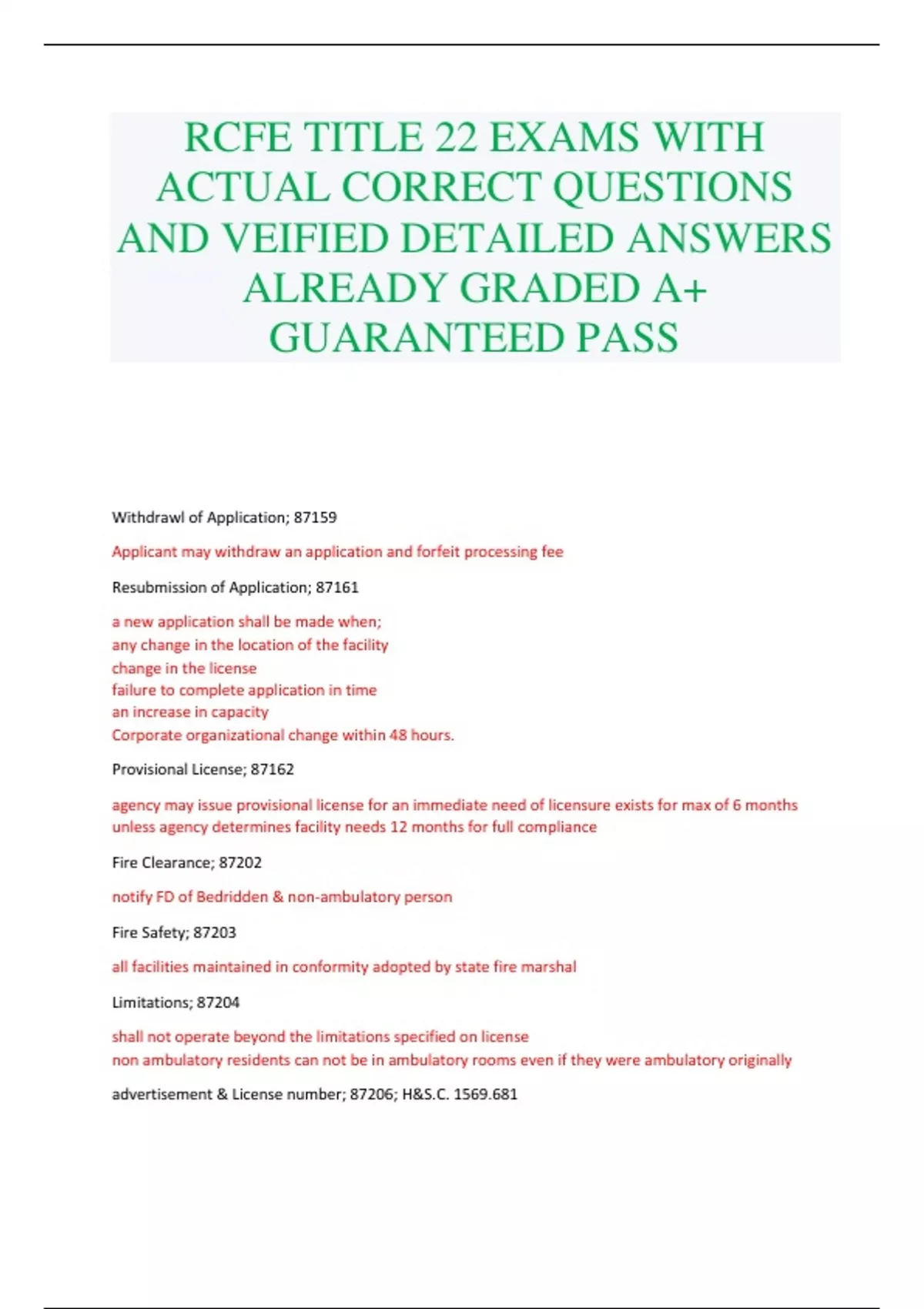 rcfe title 22 exams with actual correct questions