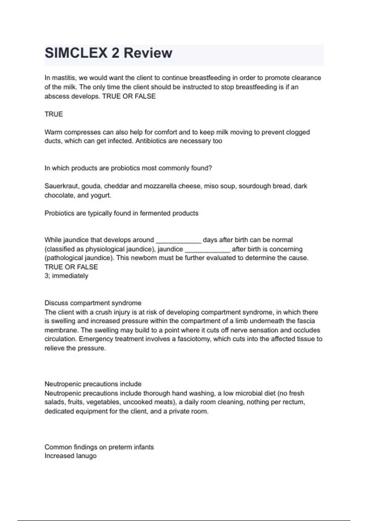 simclex 2 review questions and answers
