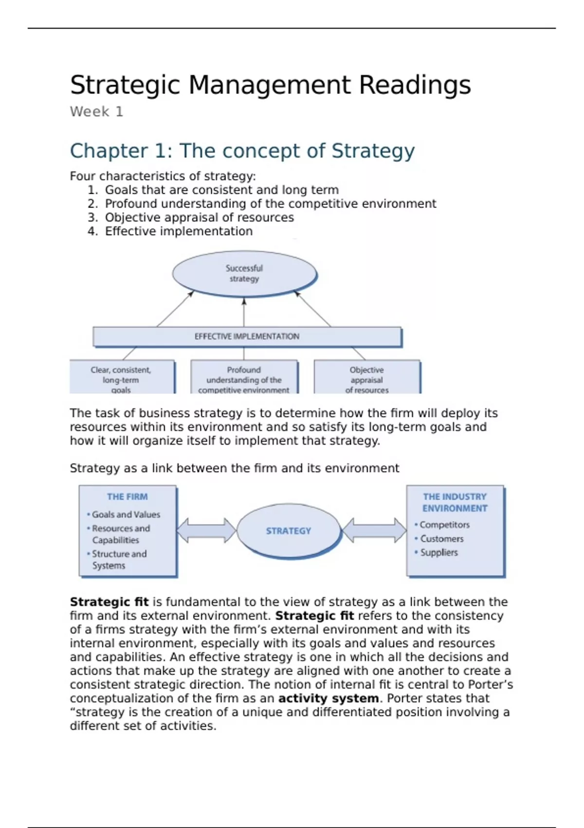Summary of the required readings for the course of Strategic Management B&M. It offered a nice basis for exam prep!
