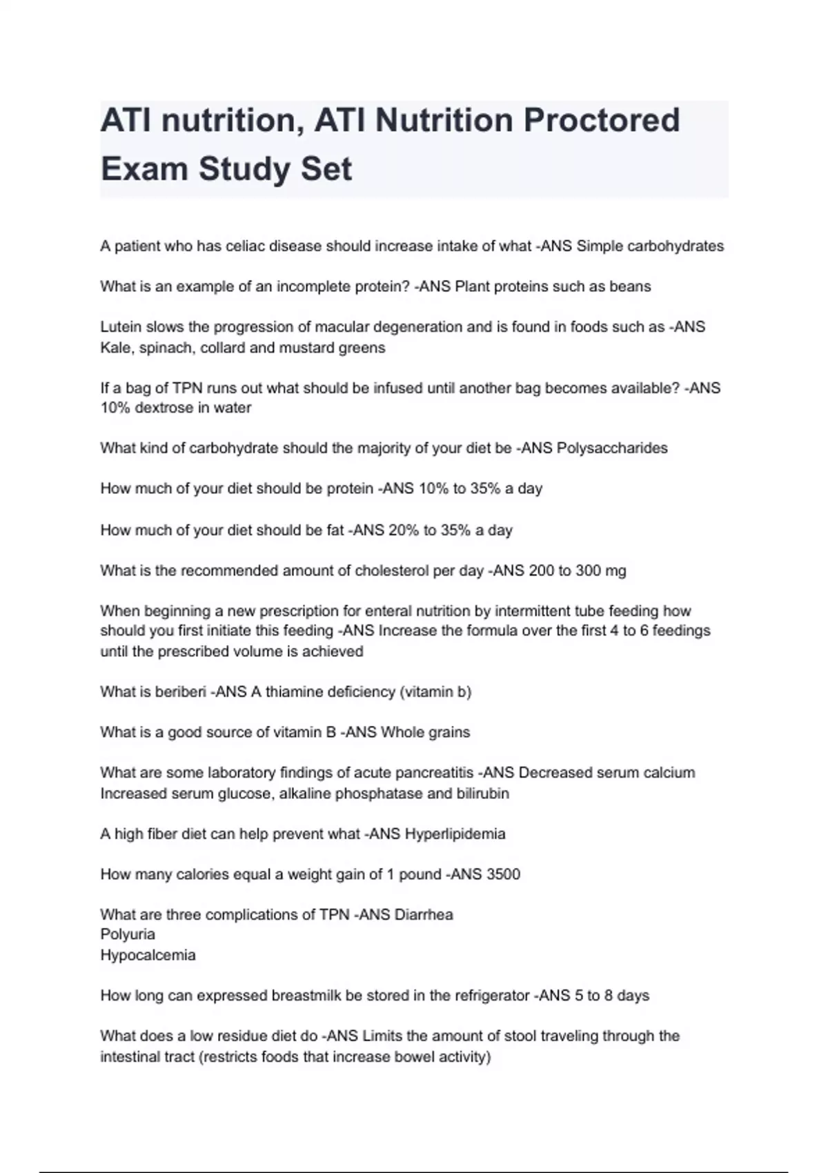 ATI nutrition, ATI Nutrition Proctored Exam Study Set