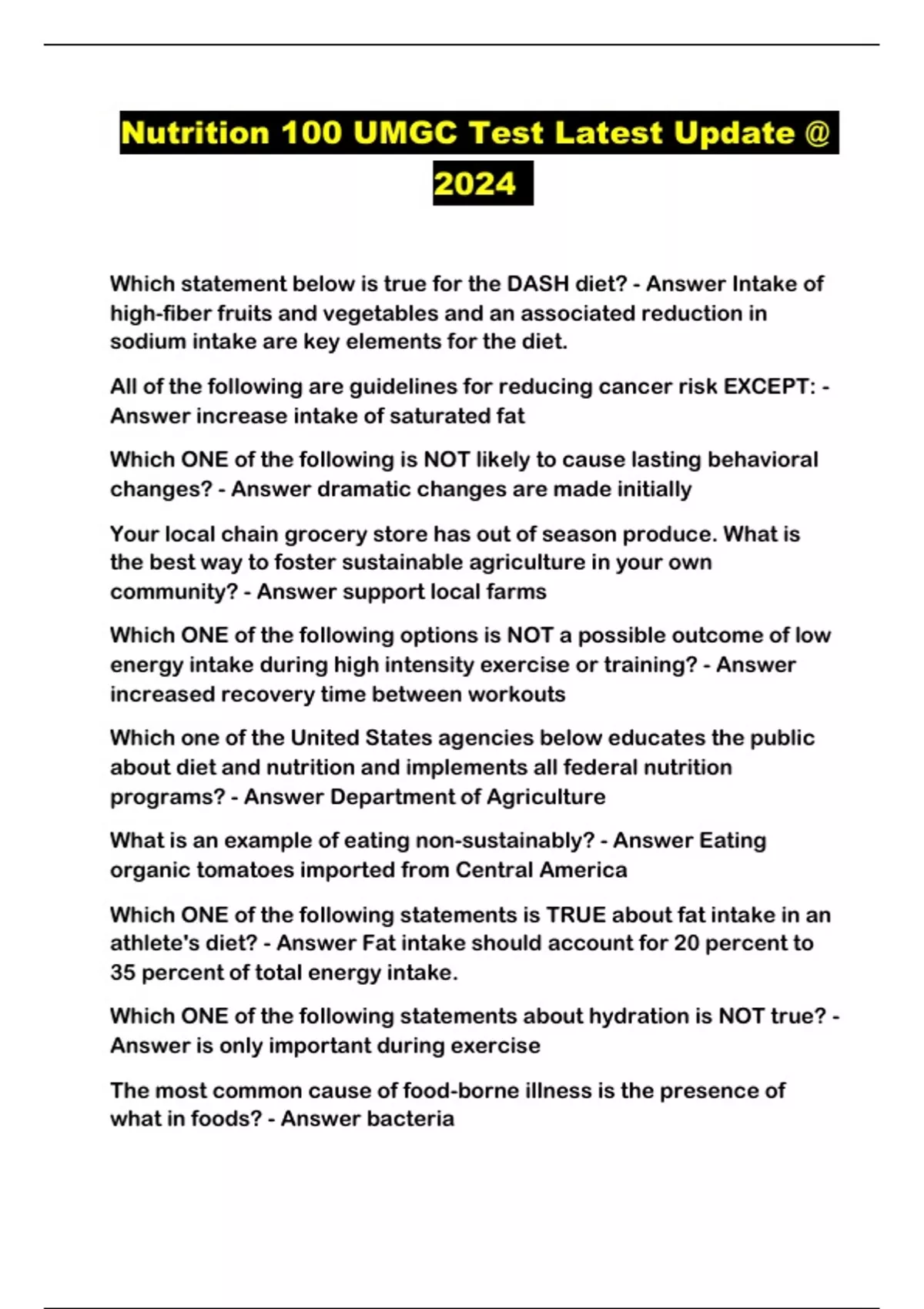 Nutrition 100 UMGC Test Latest Update @ 2024 ...