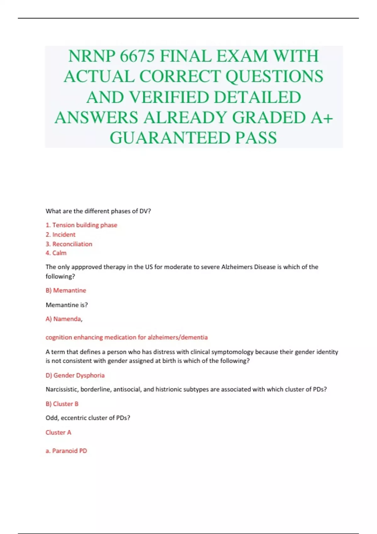 NRNP 6675 FINAL EXAM WITH ACTUAL CORRECT QUESTIONS AND VERIFIED DETAILED ANSWERS ALREADY GRADED A+ GUARANTEED PASS