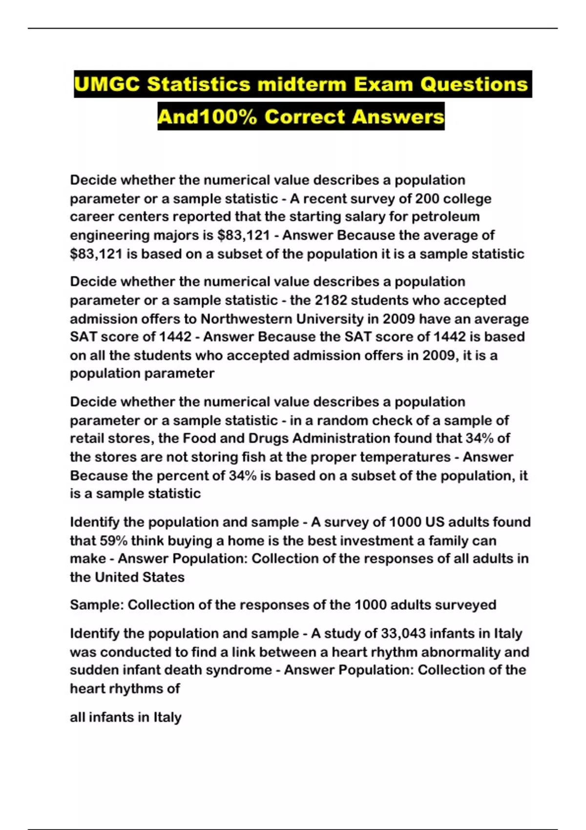 umgc statistics midterm exam questions and100 cor