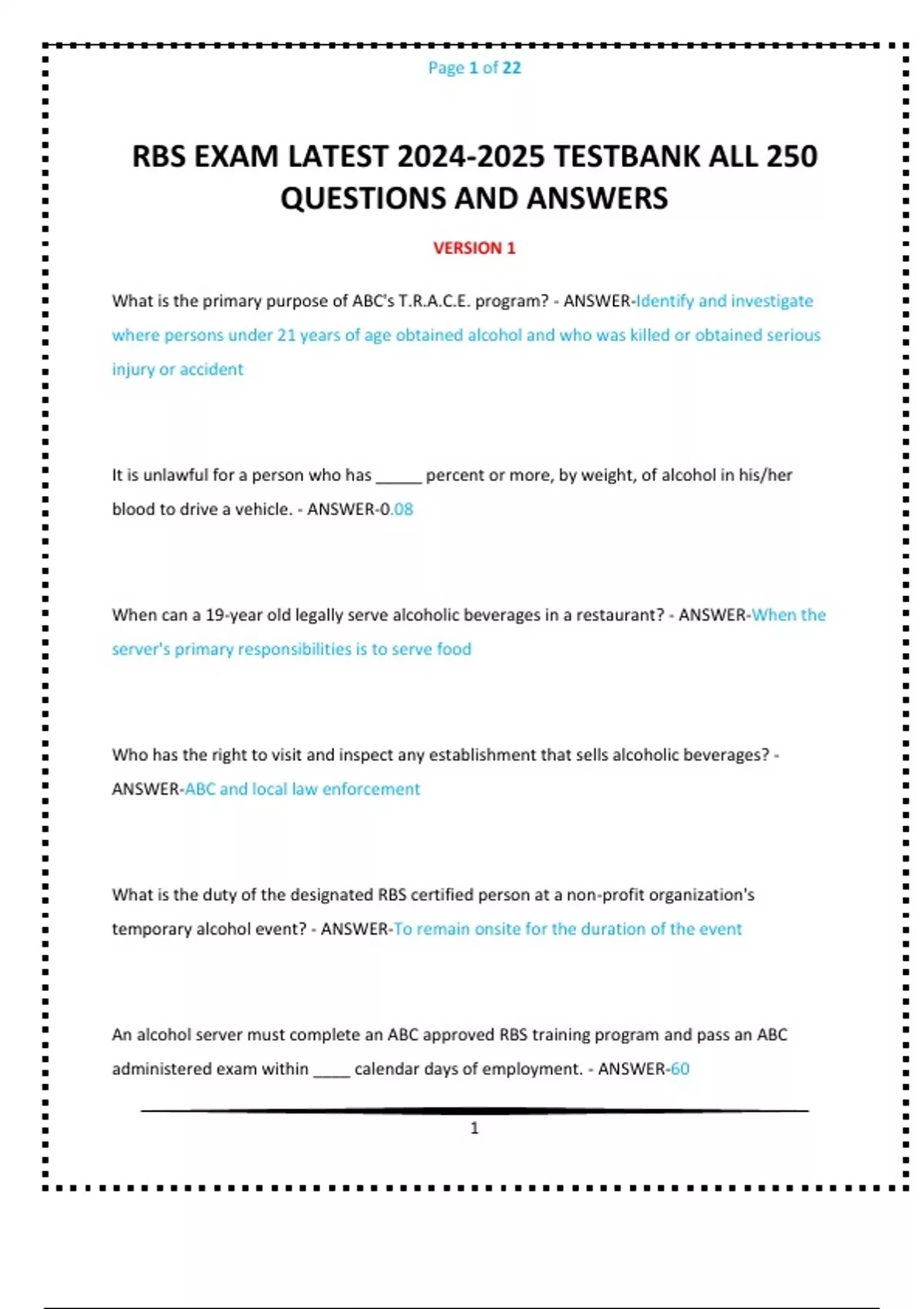RBS EXAM ACTUAL EXAM QUESTIONS AND CORRECT ANSWER 2 VERSIONS TESTBANKRBS EXAM LATEST TESTBANK ALL 250 QUESTIONS AND ANSWERS