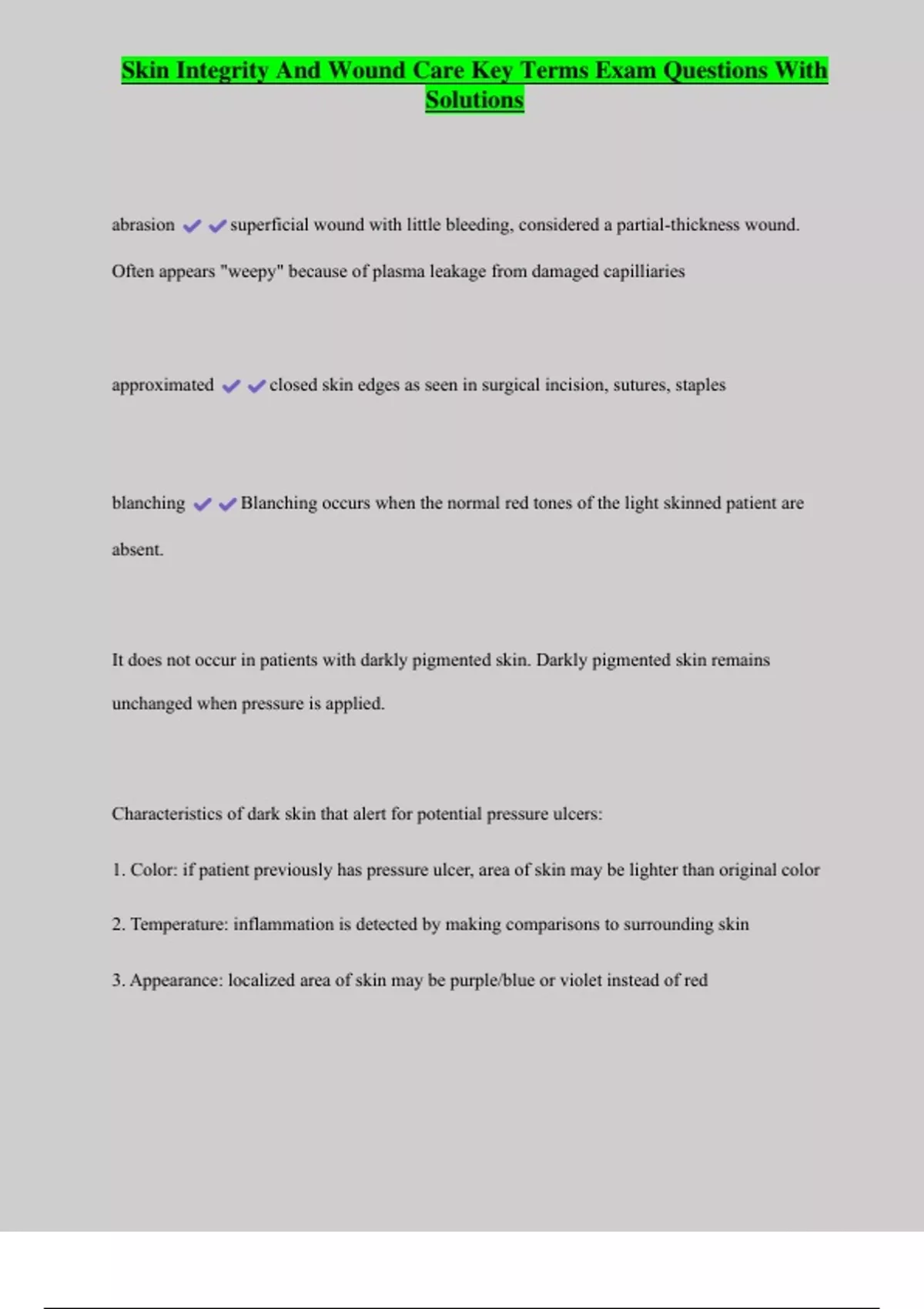 Skin Integrity And Wound Care Key Terms Exam Questions With Solutions