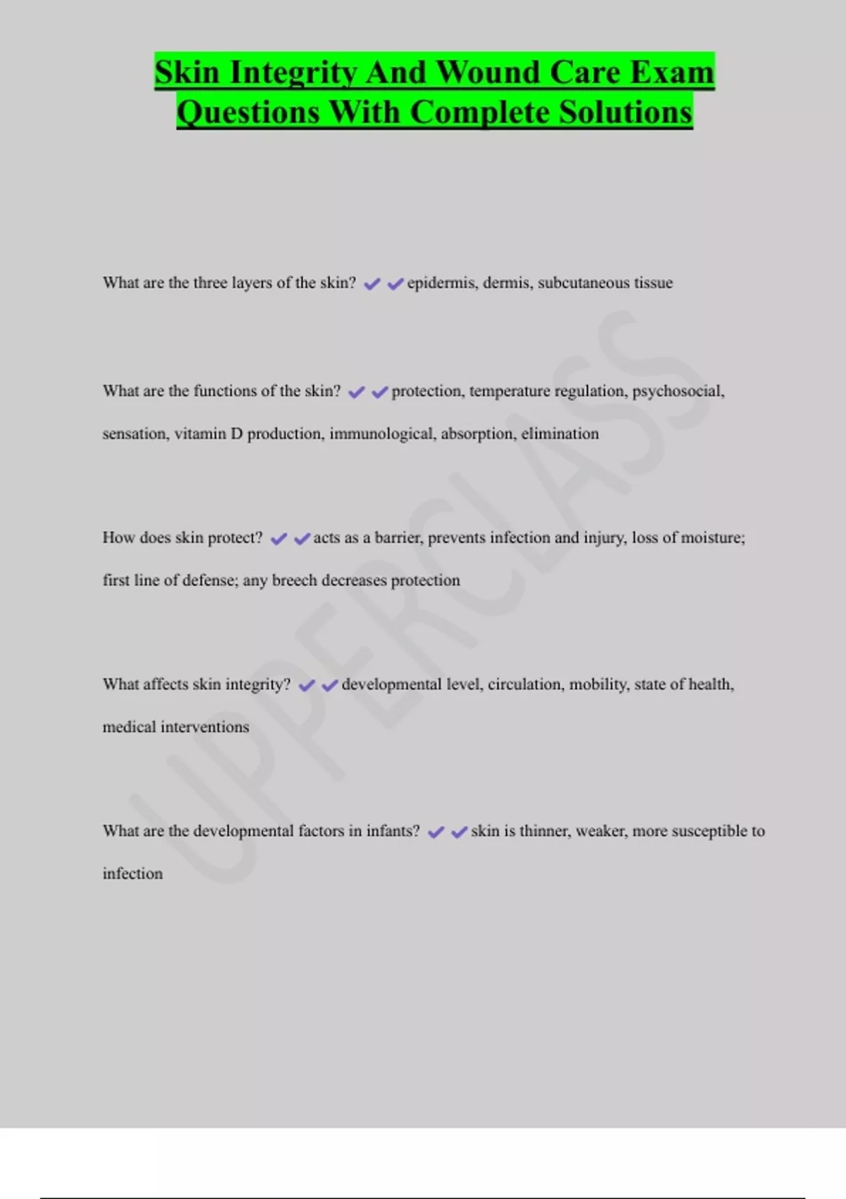 Skin Integrity And Wound Care Exam Questions With Complete Solutions