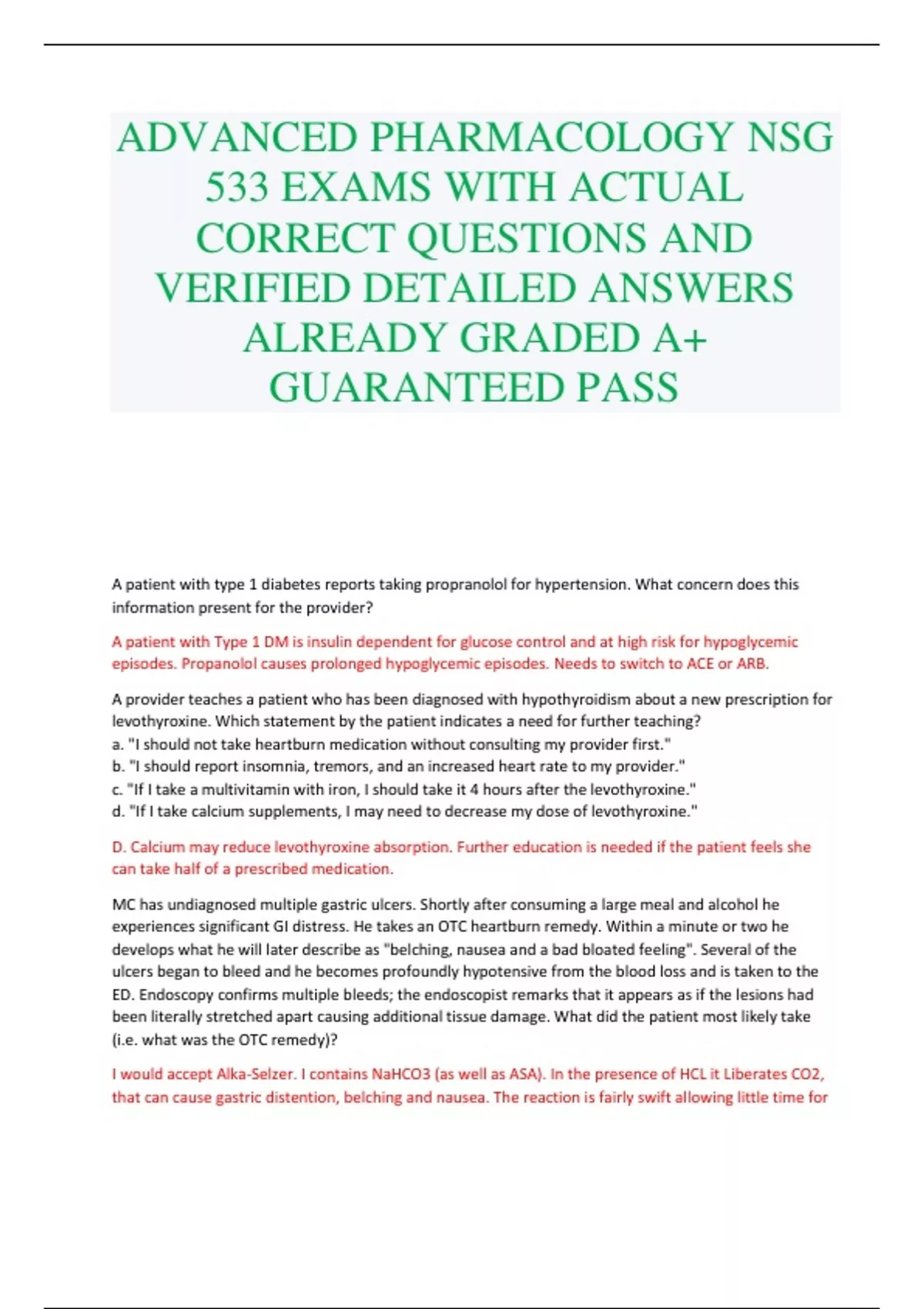 ADVANCED PHARMACOLOGY NSG 533 EXAMS WITH ACTUAL CORRECT QUESTIONS AND VERIFIED DETAILED ANSWERS ALREADY GRADED A+ GUARANTEED PASS