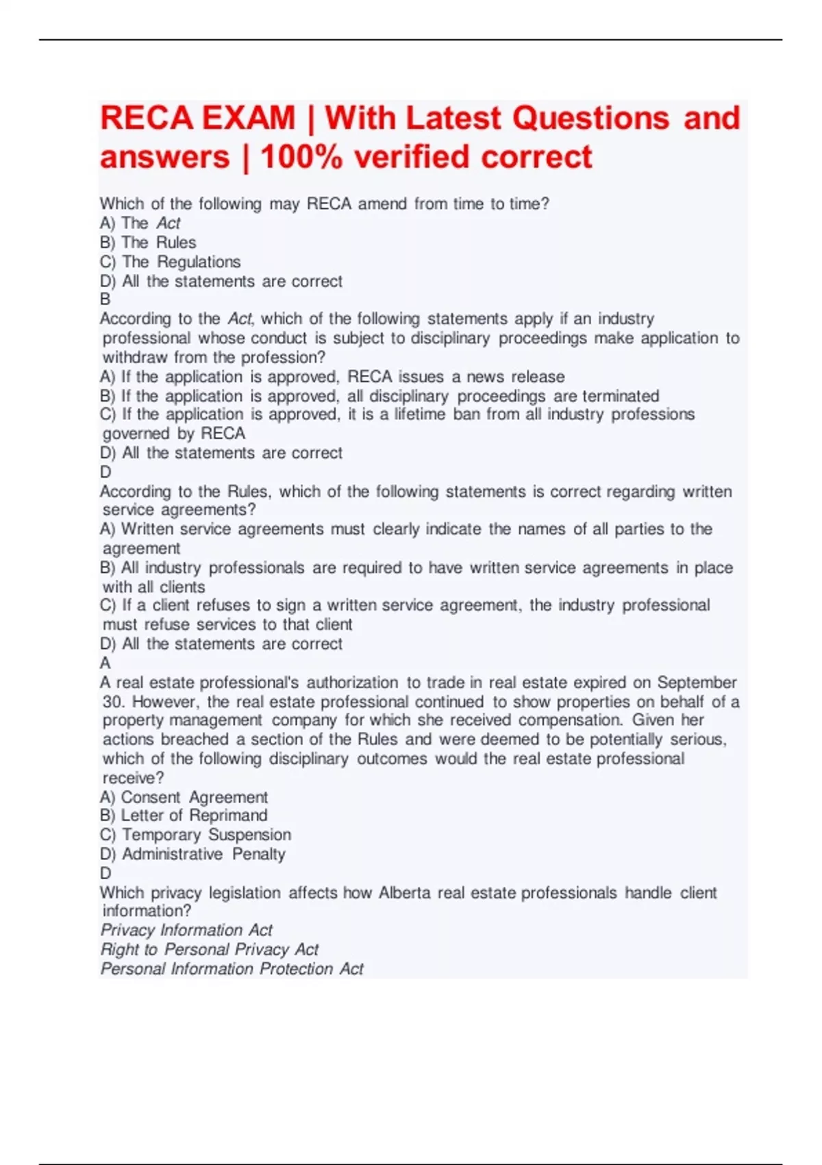 RECA EXAM | With Latest Questions and answers | 100% verified correct