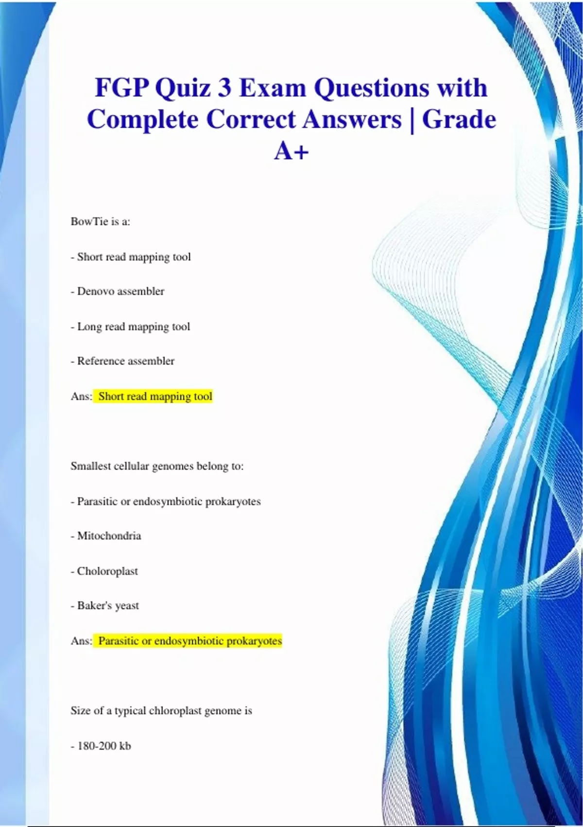 FGP Quiz 3 Exam Questions with Complete Correct Answers | Grade A+