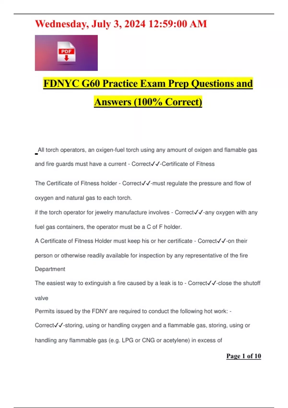 FDNYC G60 Practice Exam Prep Questions and Answers (100% Correct)